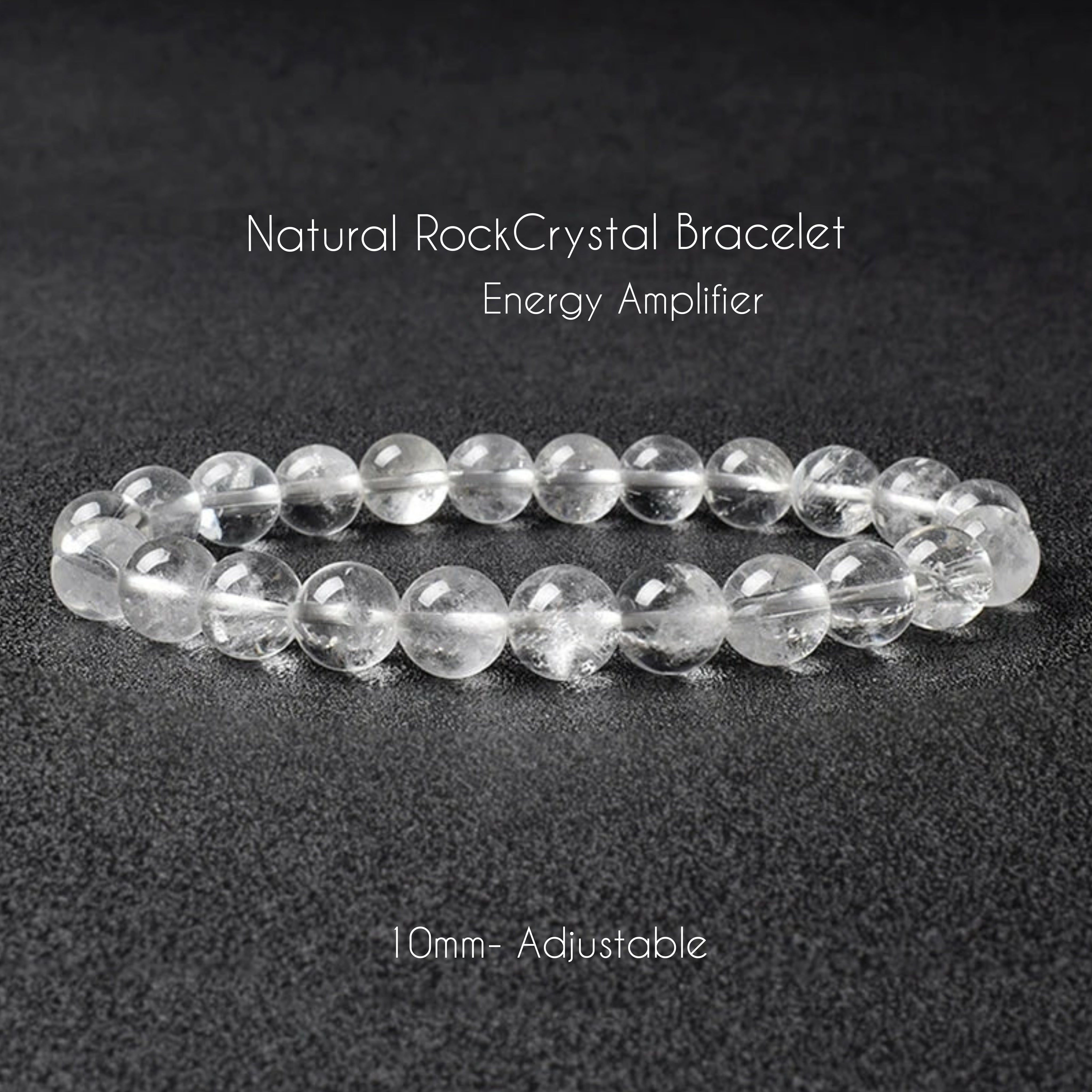 This timeless and elegant bracelet features high-quality 10mm Clear Quartz (Rock Crystal) beads. Clear Quartz, also known as Rock Crystal, is renowned for its powerful healing and energy-amplifying properties. It is a versatile stone that enhances clarity, concentration, and spiritual growth. The uniform 10mm beads create a classic and sophisticated design, making this stretch bracelet a versatile accessory suitable for any occasion.