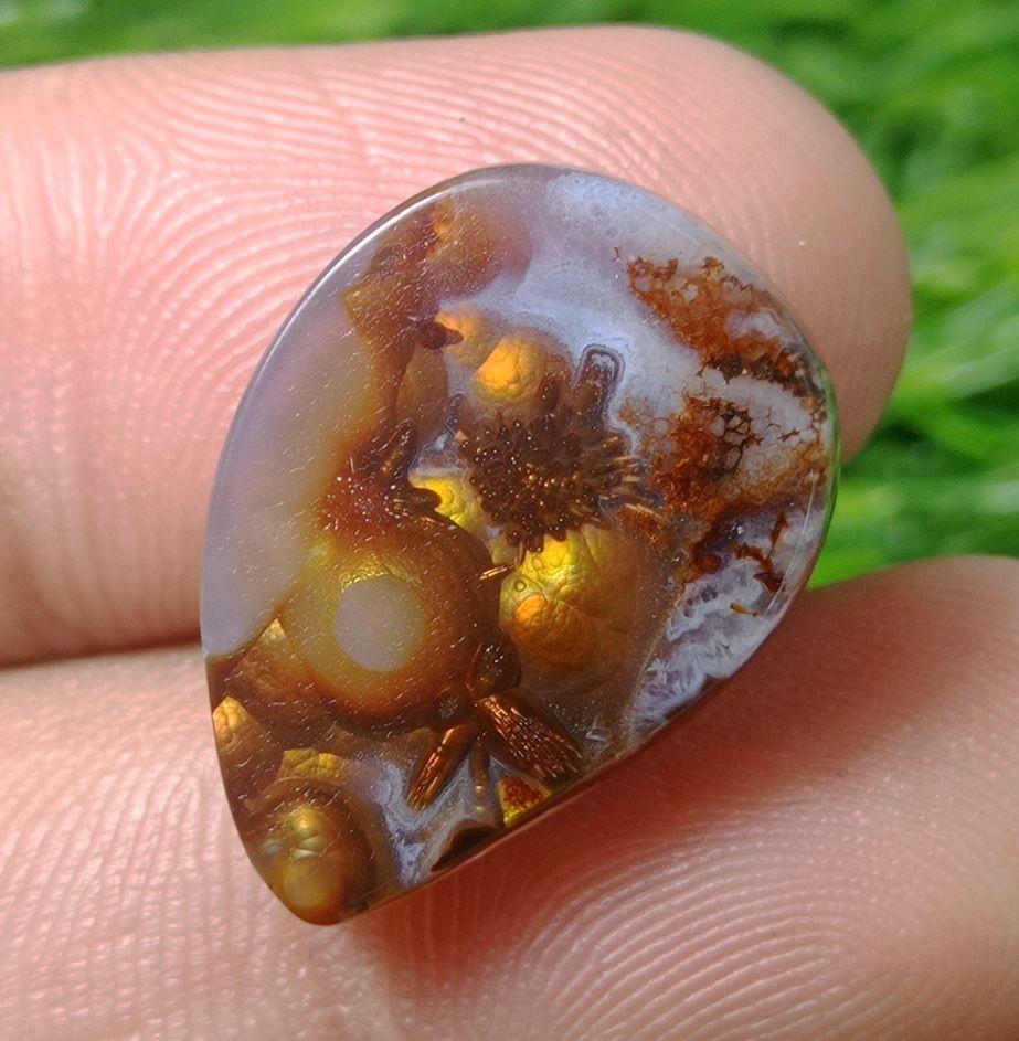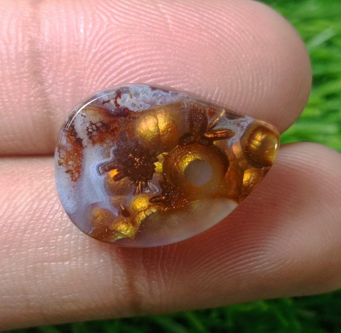 16.9ct Unique Flowery Fire Agate, Rare Fire Agate, Pear Fire Agate - Perfect gemstone Gift, Rare Gemstone than Diamonds, Dimensions - 23x16 mm