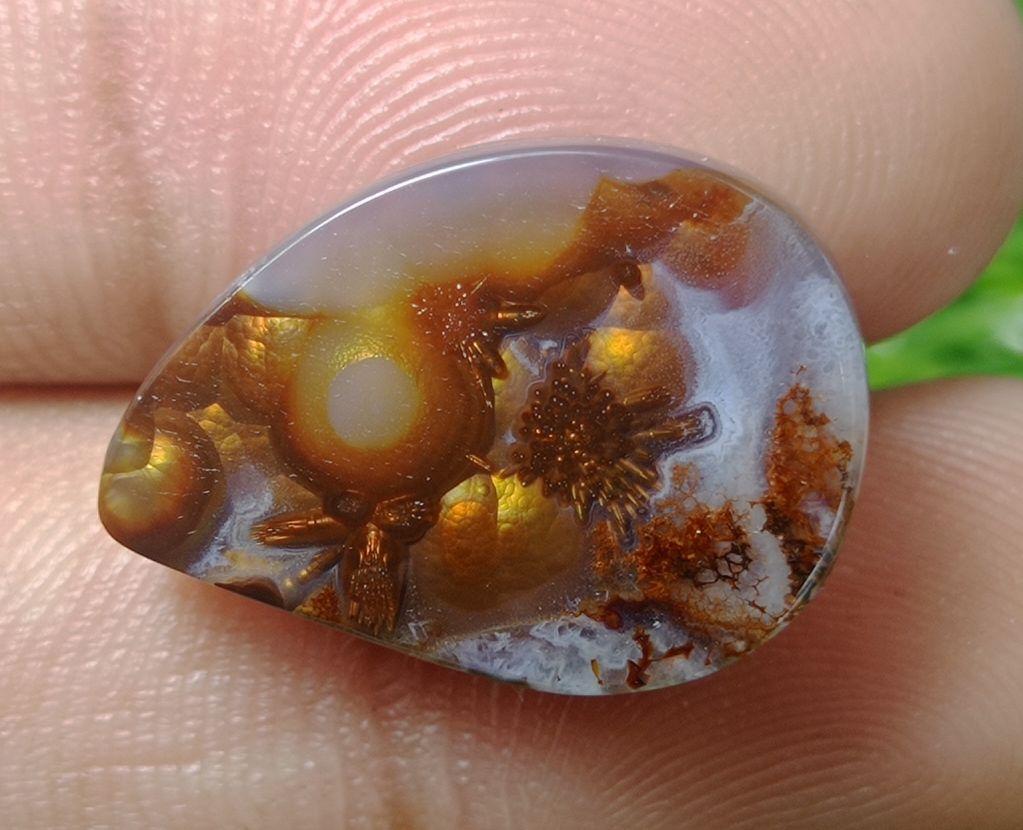 16.9ct Unique Flowery Fire Agate,  Rare Fire Agate, Pear Fire Agate - Perfect gemstone Gift, Rare Gemstone than Diamonds, Dimensions -  23x16 mm