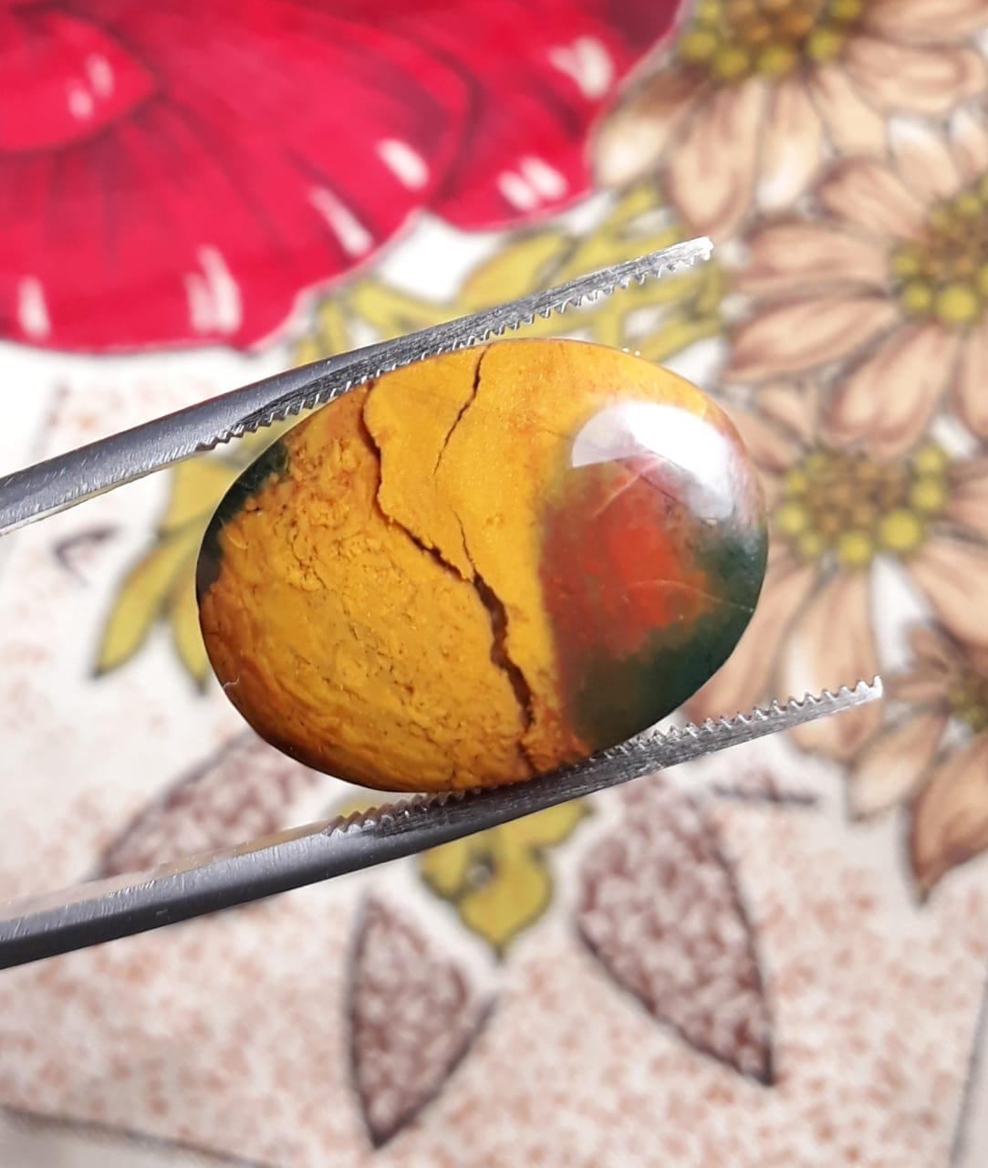 This blood stone gemstone is of superior quality, featuring a beautiful clay pattern and dimensions of 21mm x 15mm. Its natural beauty makes it an ideal gift for your loved ones.