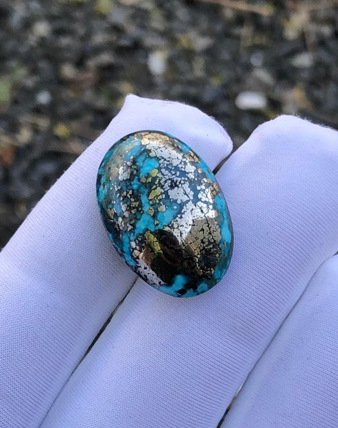 22ct Turquoise with Pyrite, Natural Feroza Stone Dimension 23x14mm