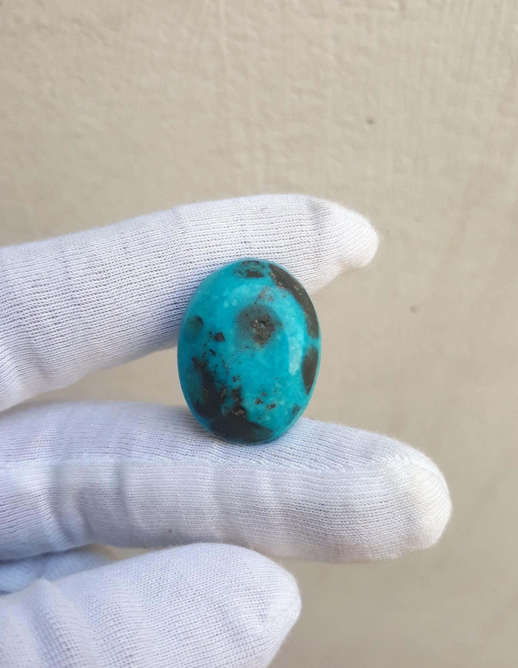 This genuine turquoise boasts a beautiful blue hue and cutting-edge certification. It measures 25x19mm and weighs 31 carats, making it a durable and reliable choice for jewelry makers and collectors.