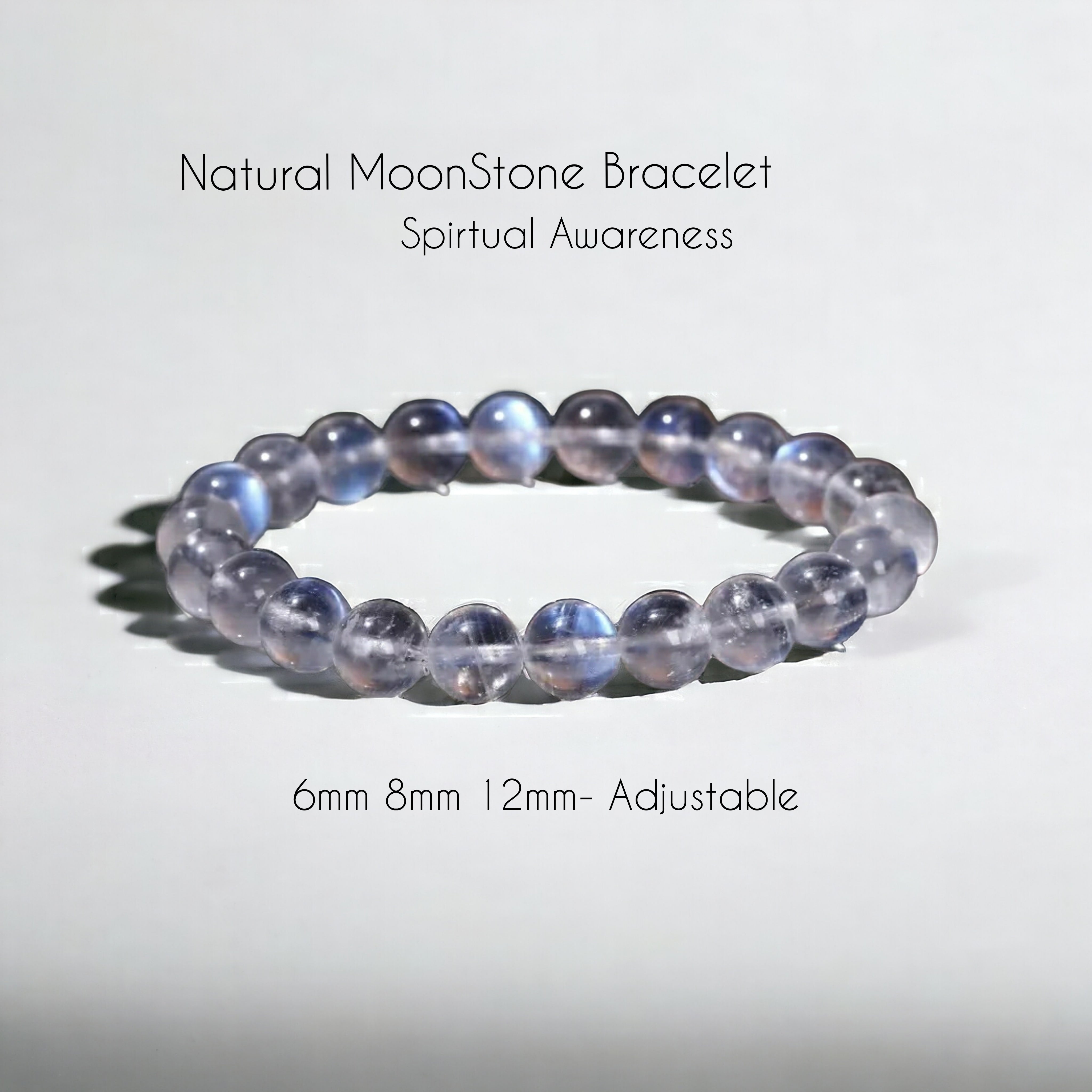 This enchanting bracelet features beautiful Blue Sheen Moonstone beads, known for their captivating blue sheen and mystical qualities. Moonstone is a stone of new beginnings, intuition, and emotional balance. The bracelet's uniform beads create a sleek and elegant design, making it a perfect accessory for anyone seeking both aesthetic beauty and spiritual benefits.