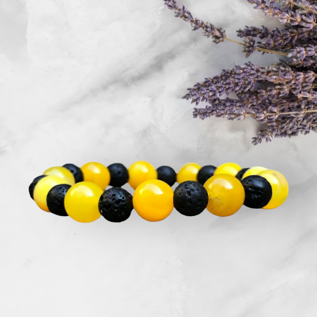 Confidence Booster Natural 10mm Yellow Agate and 8mm Lava Gemstone Bracelet