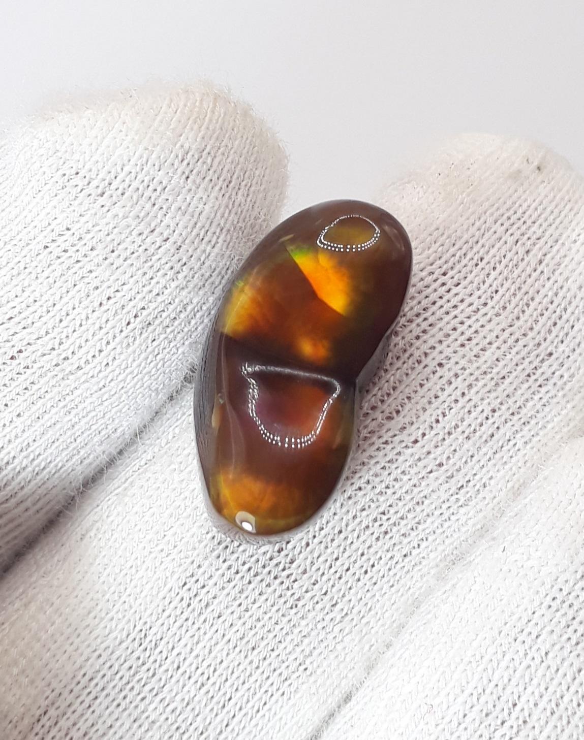 This Mexican Fire Agate gemstone is one of the rarest gemstones available, more rare even than diamonds. Its natural yellow fire agate is raw, yet polished to the perfect dimensions of 17.2 x 9 mm for a dazzling and unique look. Make this rare and precious gemstone the perfect gift!