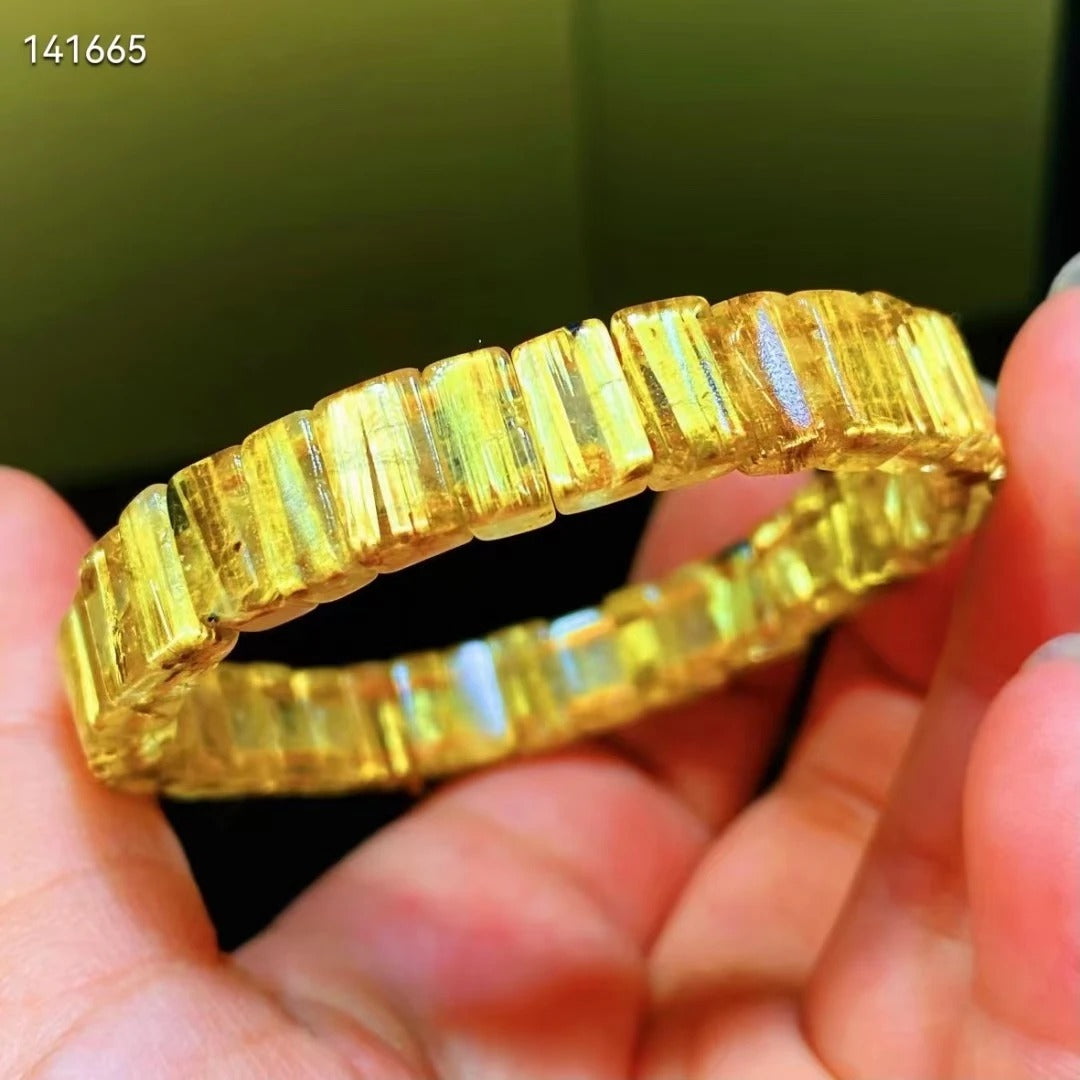 Genuine Natural Gold Rutilated Quartz Flower Gemstone Bracelet Bangle 8.5x6mm