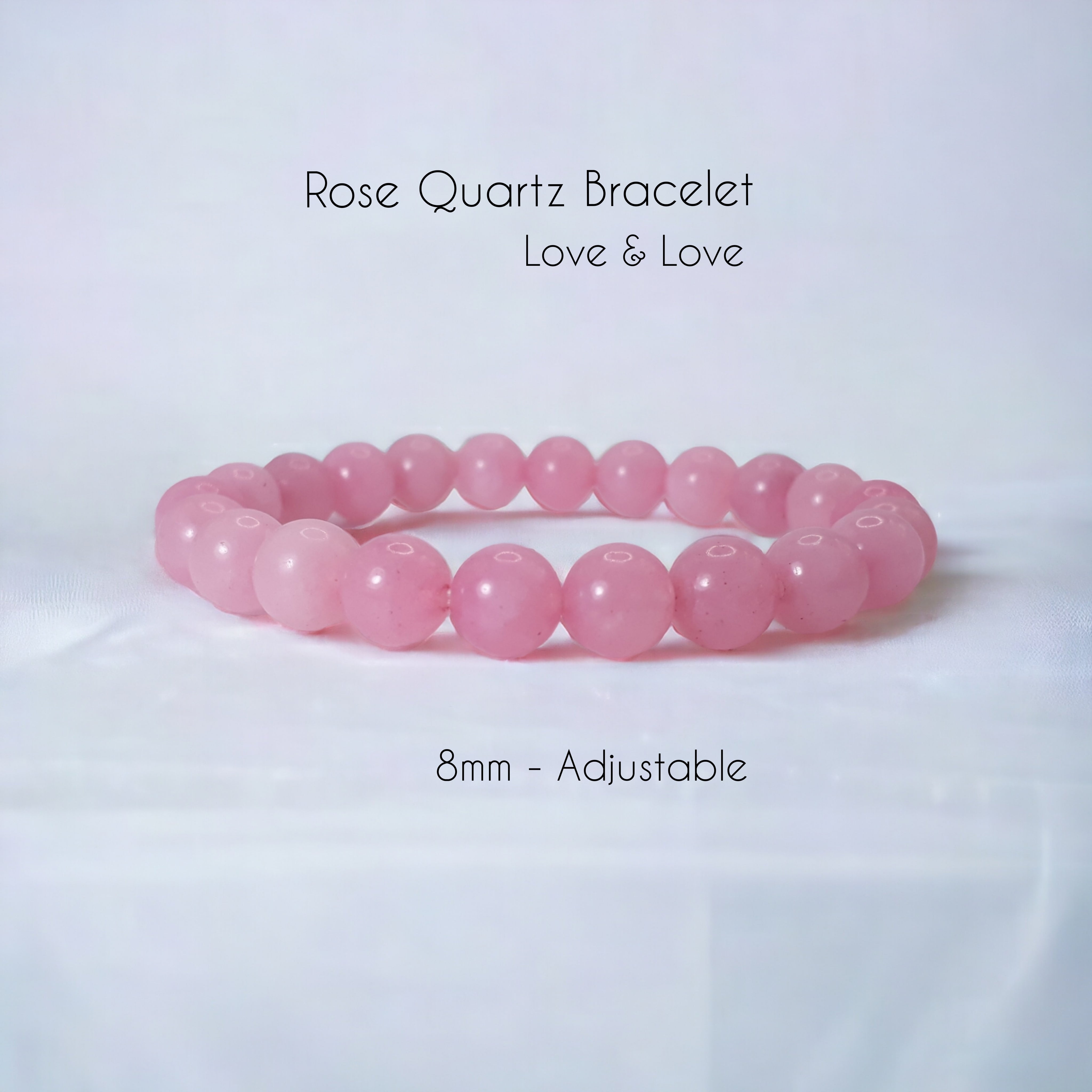 • 8mm Natural Rose Quartz Beads: Uniform beads known for their soft pink hue and loving energy. approx weight: 16 grams