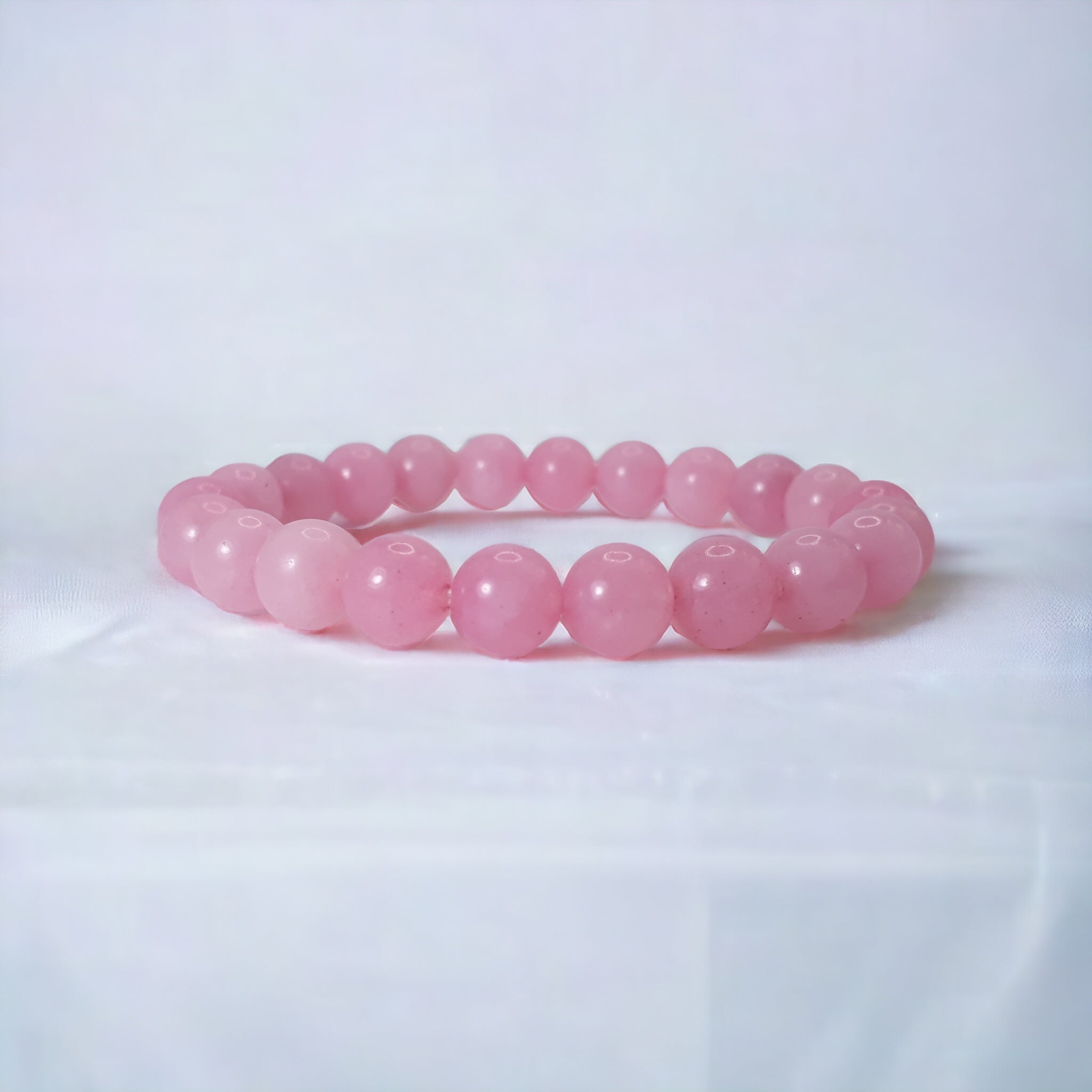 This elegant and soothing bracelet features 8mm natural rose quartz beads, renowned for their gentle and loving energy. Rose quartz is often called the "Stone of Love" due to its strong association with love, compassion, and emotional healing. The uniform 8mm beads create a classic and timeless design, making this stretch bracelet a perfect accessory for anyone looking to enhance their emotional well-being and add a touch of natural beauty to their style.