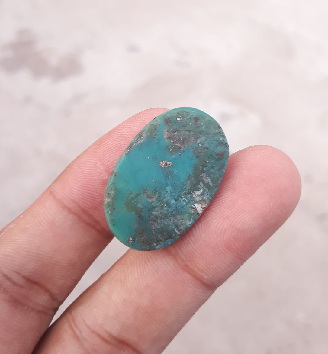 Natural Turquoise Green Matrix with Pyrite, Shajri Feroza, Oval Shape, Real Firoza Stone,Dimensions-29x19mm