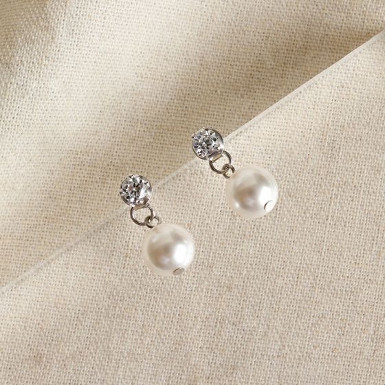 Simple Round Shell Pearls CZ Stud Earrings - Palladium-Plated Silver Pearl Earrings for women - Perfect Pearl Earrings with Gift Wrapping Included