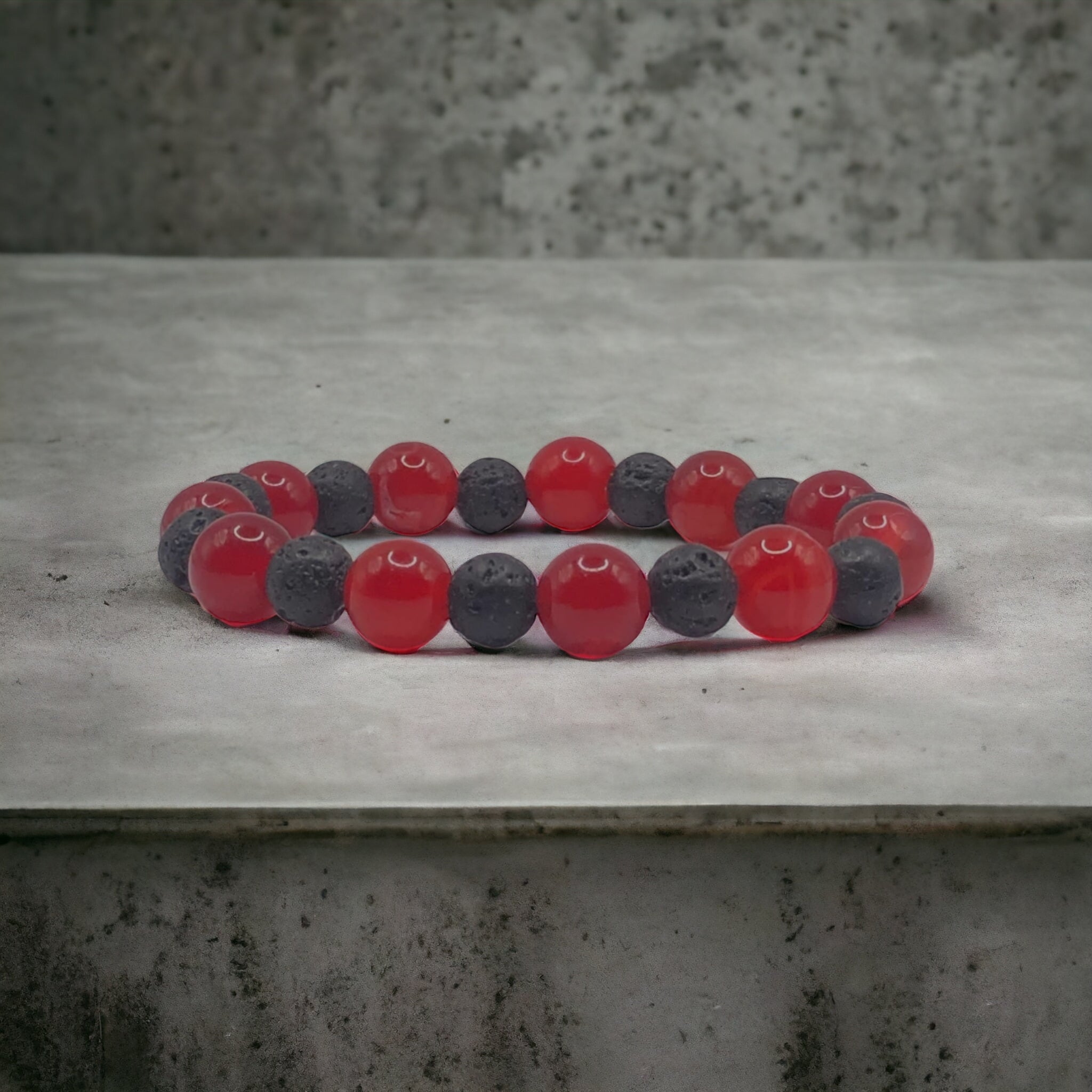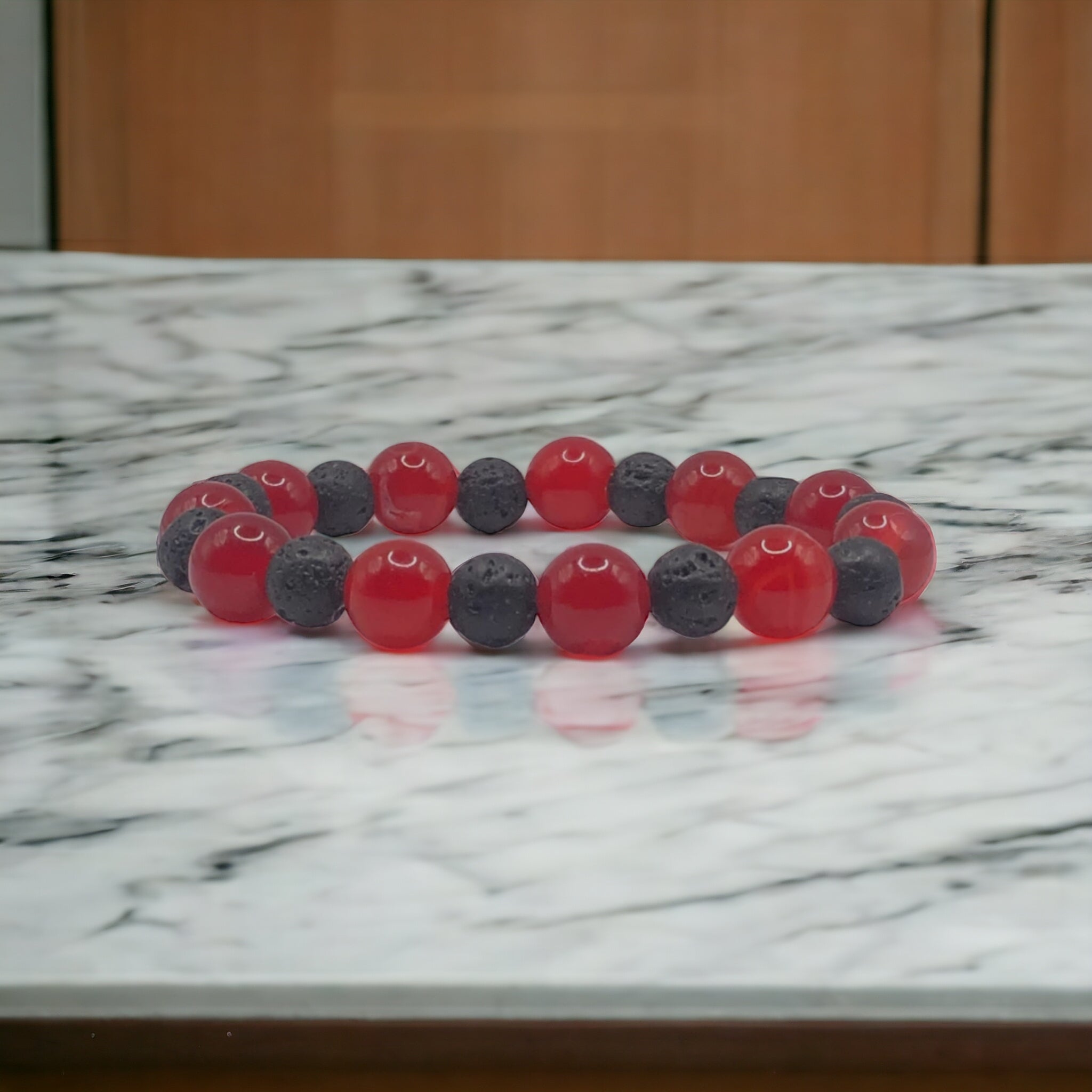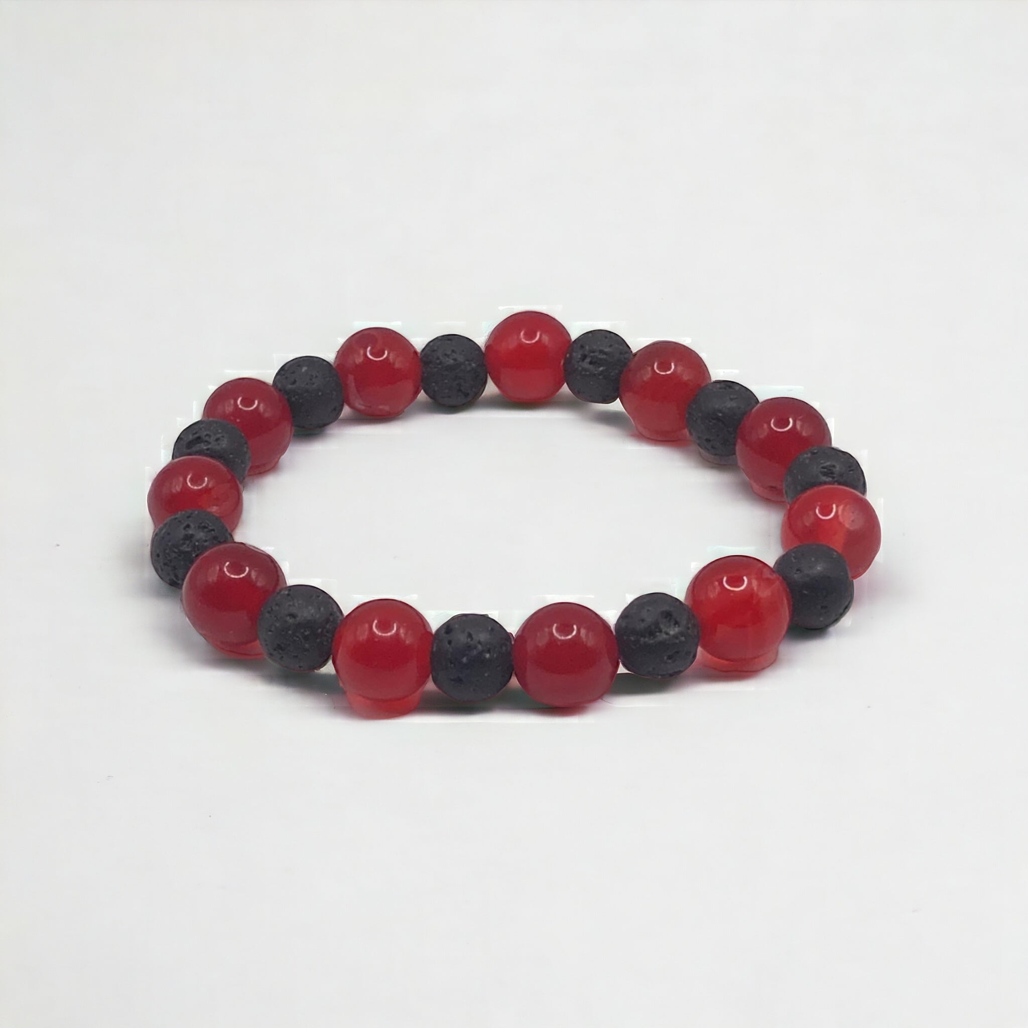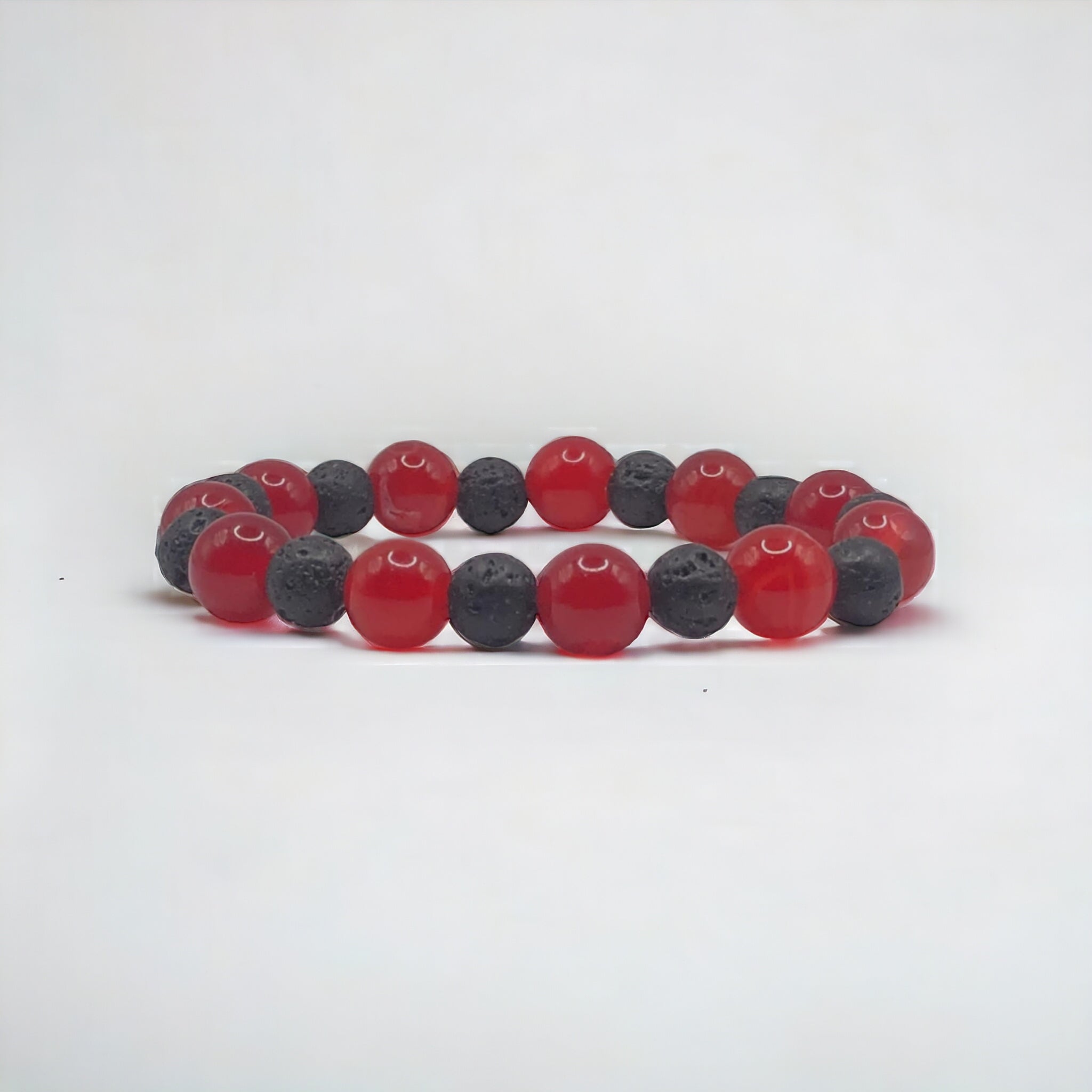 Этот элегантный браслет сочетает в себе яркую энергию красного агата и заземляющие свойства лавовых бусин. Этот эластичный браслет с бусинами красного агата диаметром 10 мм и бусинами лавы диаметром 8 мм сочетает в себе стиль и функциональность. Красный агат известен своими заземляющими и стабилизирующими свойствами, способствующими эмоциональному равновесию и уверенности. Лавовые бусины не только заземляют, но и идеально подходят для распространения эфирных масел, добавляя этому красивому аксессуару дополнительный терапевтический эффект.