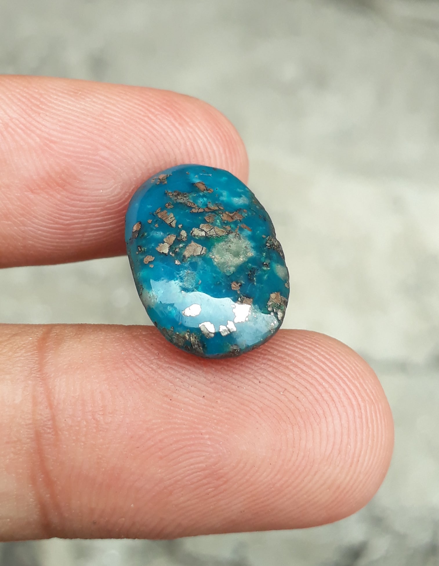 Этот классический кабошон бирюзы отличается потрясающим насыщенным синим цветом и сложной матрицей пирита. Этот камень весом 12,2 карата, профессионально огранённый, идеально подходит для создания прекрасных ювелирных изделий или коллекционирования. Благодаря своему эффектному дизайну он, несомненно, украсит любое украшение.