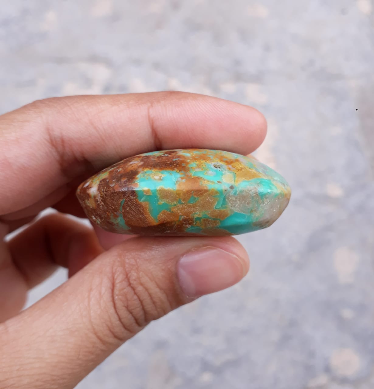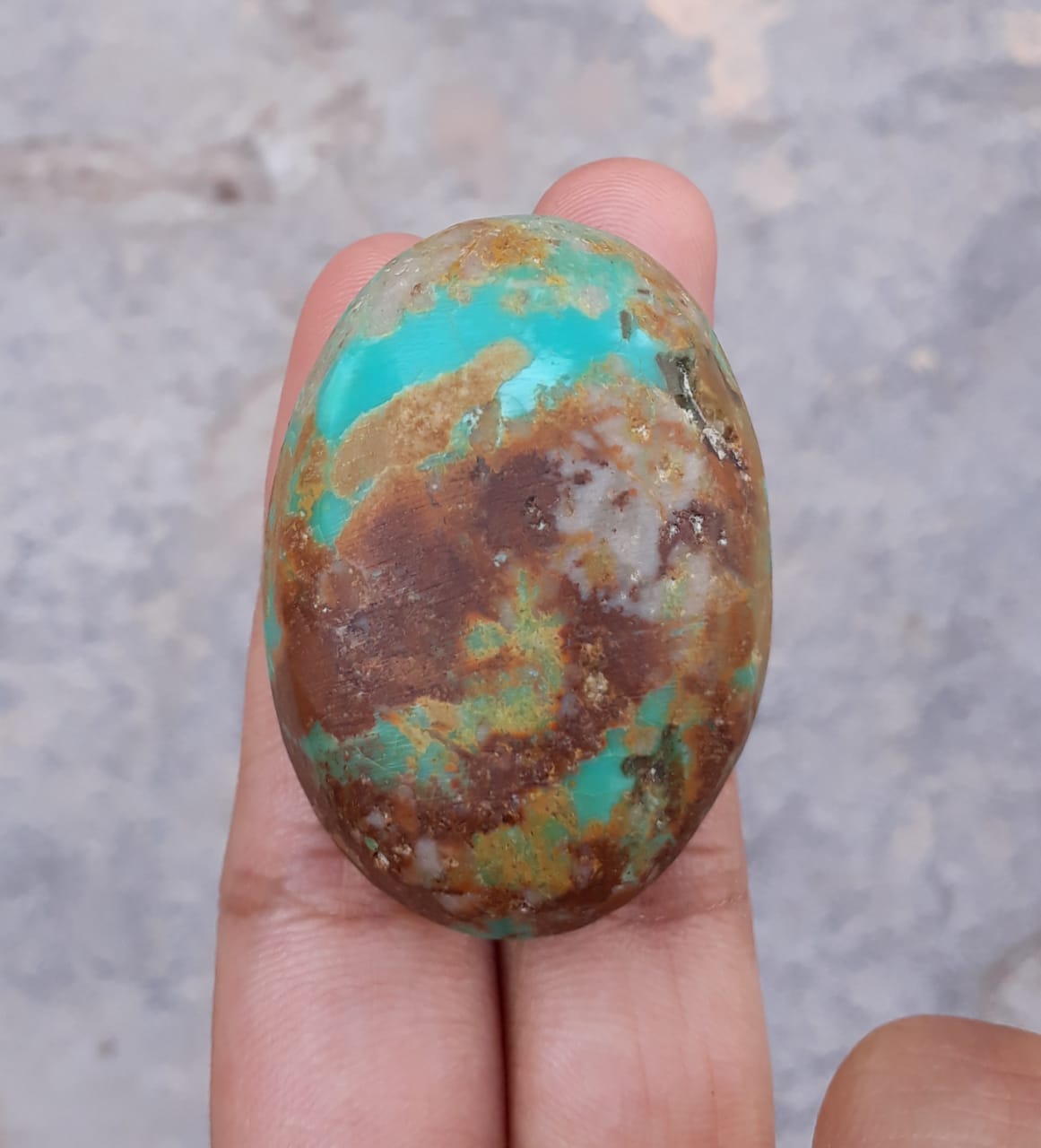 Украсьте себя этим красивым овальным камнем из натуральной бирюзы и зеленой матрицы, изготовленным из настоящего камня Фирозы с прожилками пирита. Этот драгоценный камень имеет уникальный размер 43x31 мм и обязательно выделит вас из толпы. Купите этот оригинальный натуральный драгоценный камень Feroza из Пакистана.