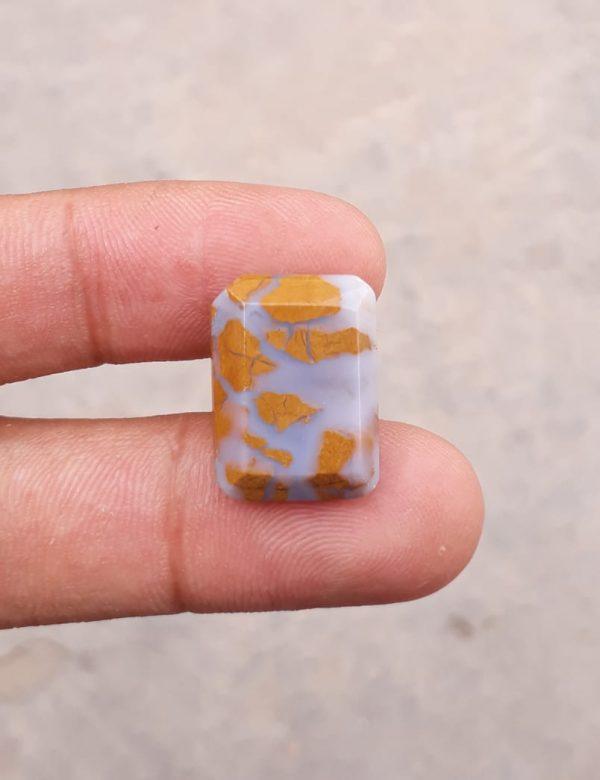 Этот уникальный кабошон вырезан из золотой яшмы премиум-класса с характерными золотистыми и белыми пятнами. Из региона Белуджистан.