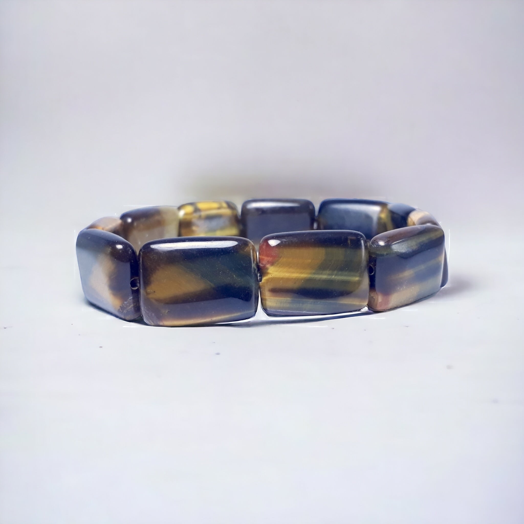 Этот изысканный браслет украшен натуральными черными и желтыми бусинами «Тигровый глаз» премиум-класса размером 18x13 мм. Драгоценные камни «Тигровый глаз», известные своим поразительным сочетанием глубокого черного и ярких золотисто-желтых оттенков, почитаются за свои защитные и заземляющие свойства. Более крупные удлиненные бусины создают смелый и изысканный дизайн, что делает этот эластичный браслет впечатляющим аксессуаром на любой случай.