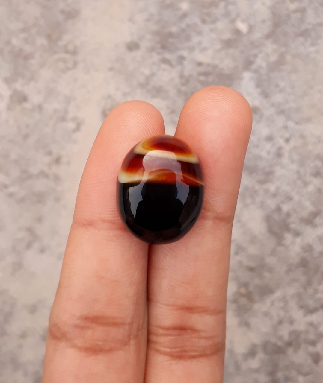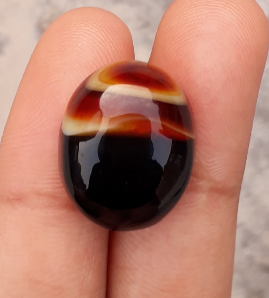 Этот агат — потрясающий пример многослойного агата. Благодаря глубокой черной основе со сливочными и красными слоями это очаровательное изделие с уникальным внешним видом. Полосатый узор привнесет в ваш стиль привлекательный элемент.