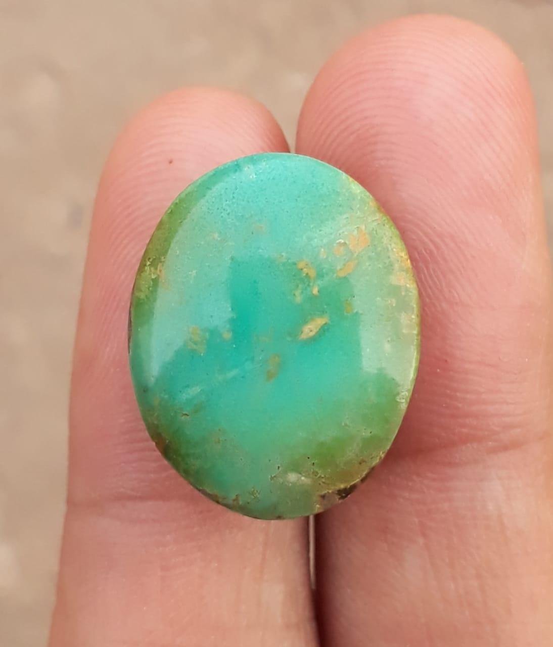 Эта натуральная бирюза Зеленая бирюза — это драгоценный камень, состоящий из настоящего камня Фероза размером 22,7 карата и размером 21,8x17,2 мм, который идеально подходит для любого ювелирного или художественного проекта. Он имеет овальную форму и естественный оттенок, что делает его идеальным выбором для изготовления ювелирных изделий.