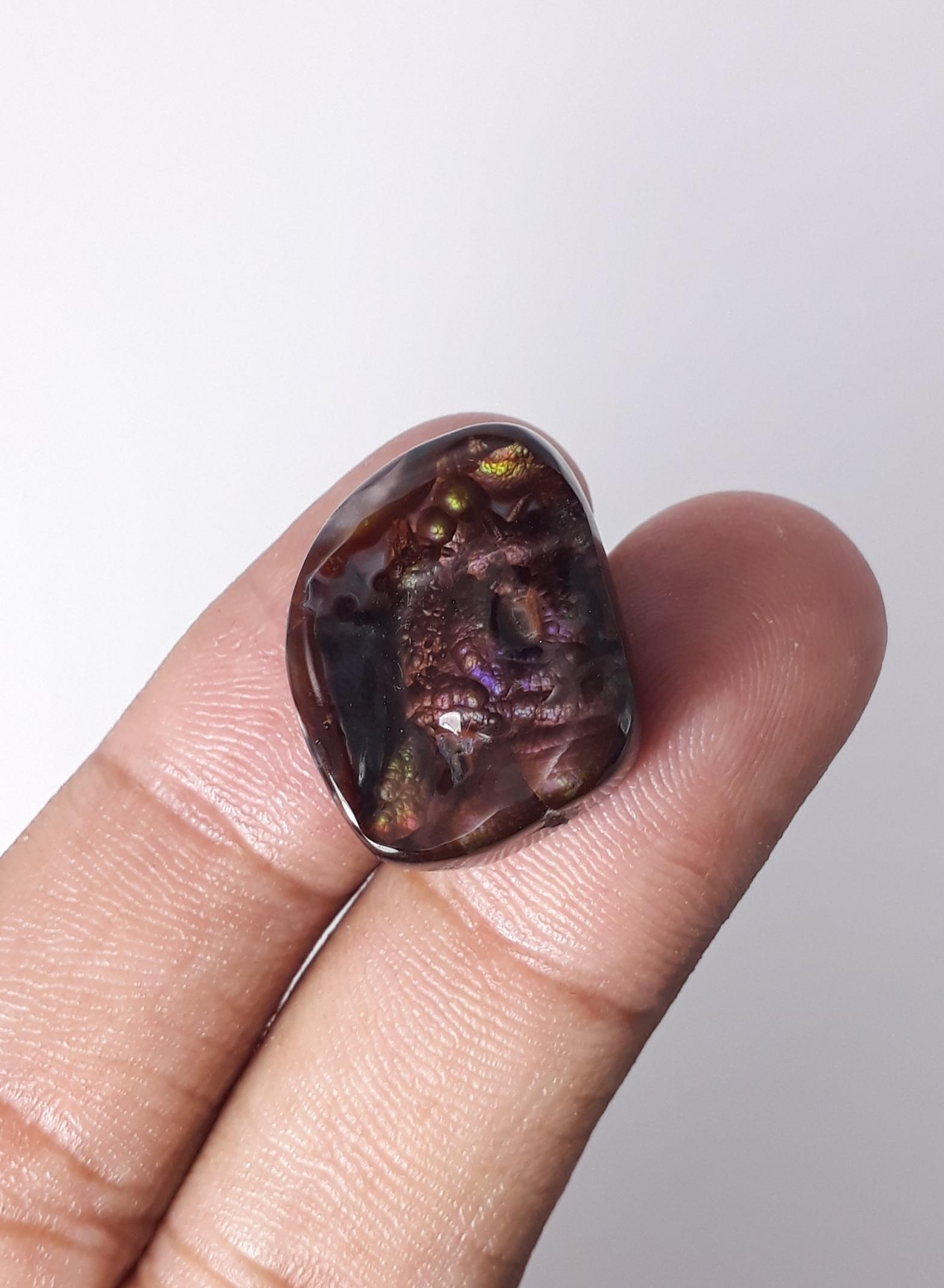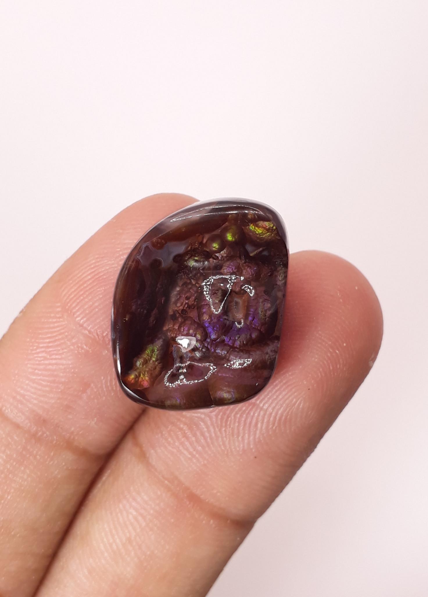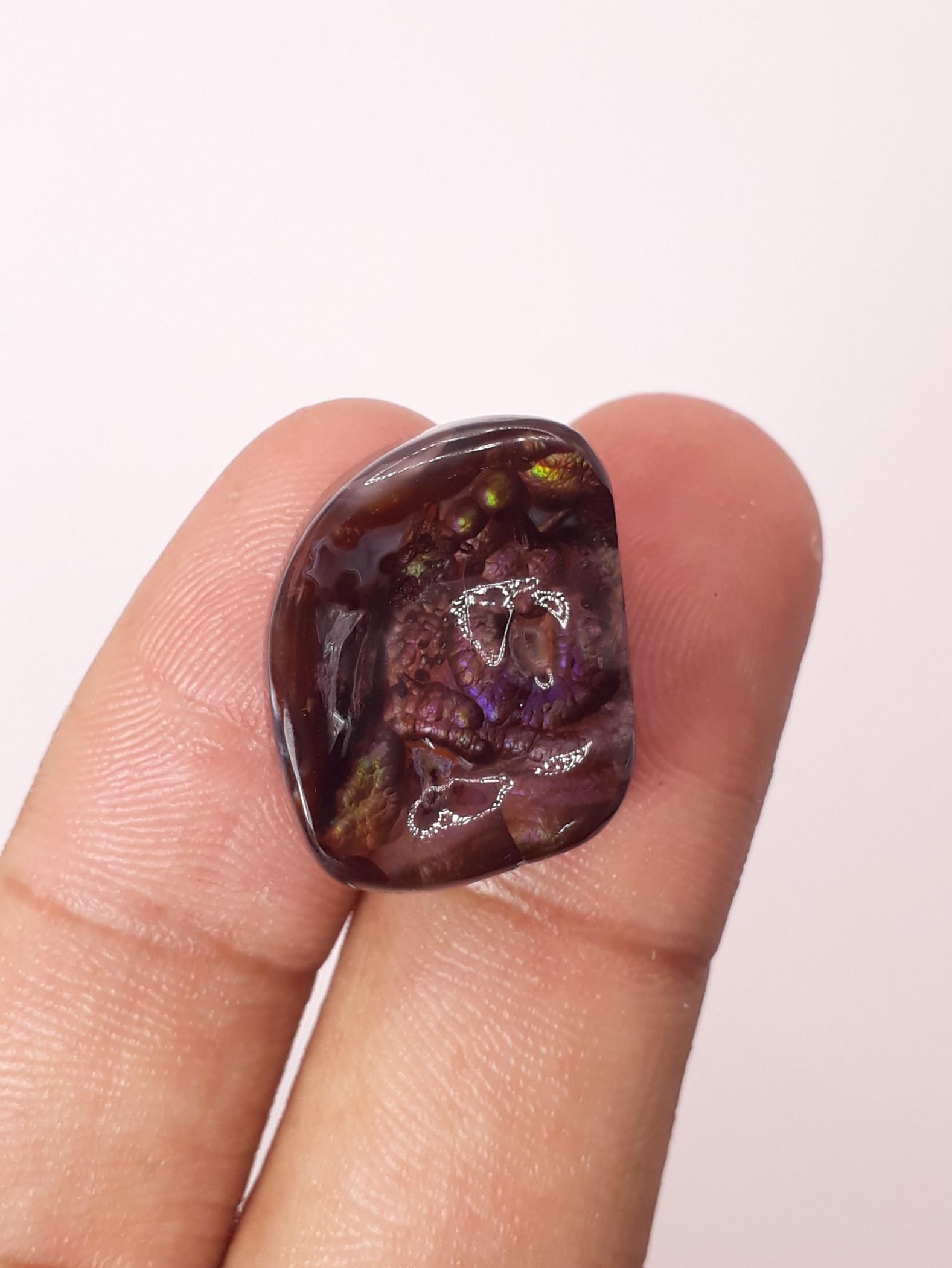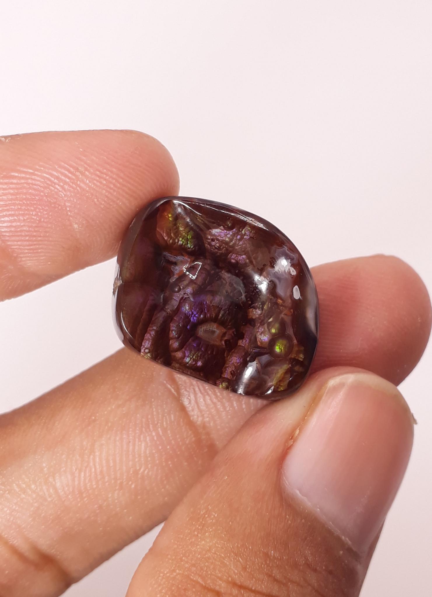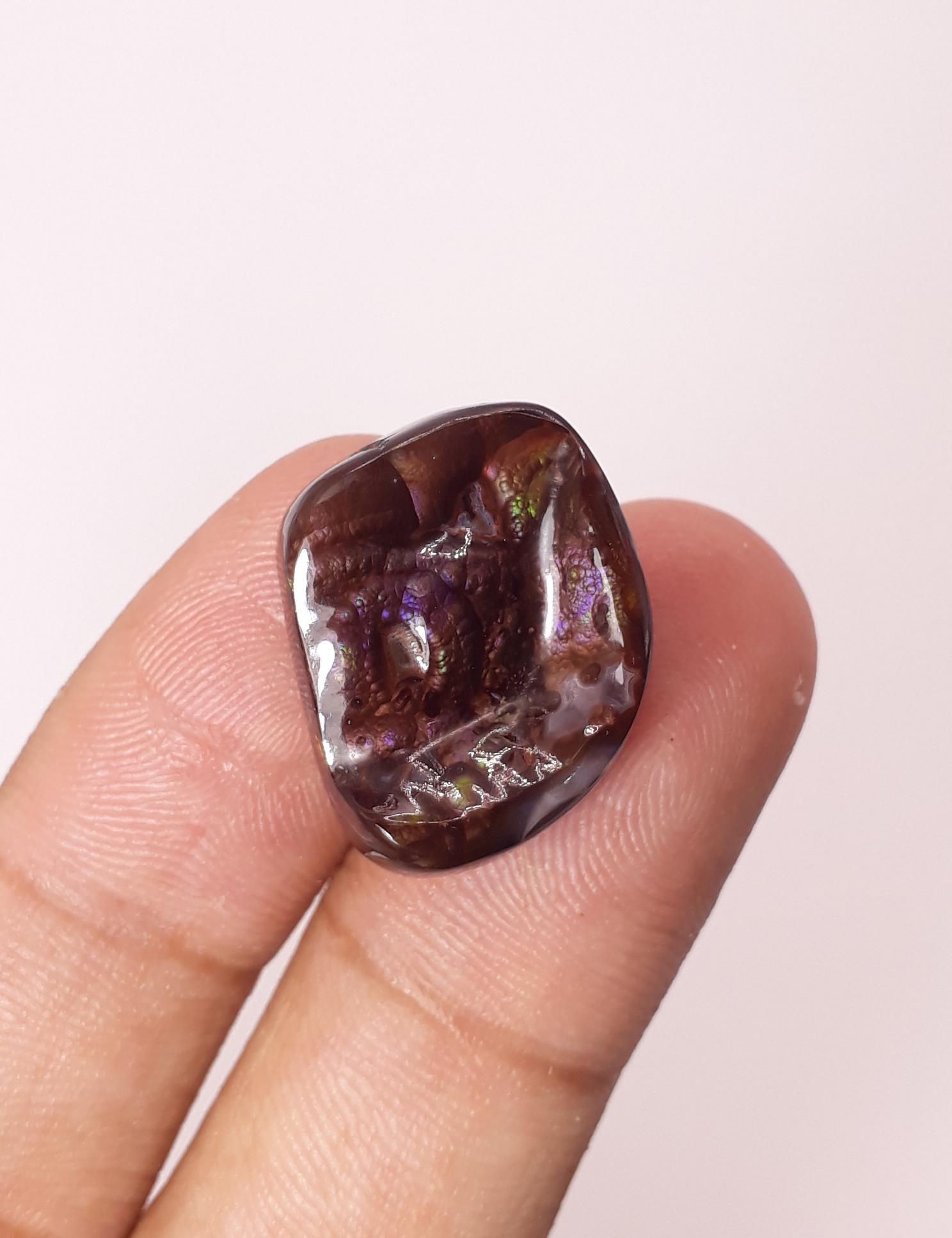 Пурпурный огненный агат весом 23,8 карата — редкий полированный драгоценный камень размером 23x17 мм. Его яркий фиолетовый оттенок станет прекрасным дополнением к любой коллекции украшений.