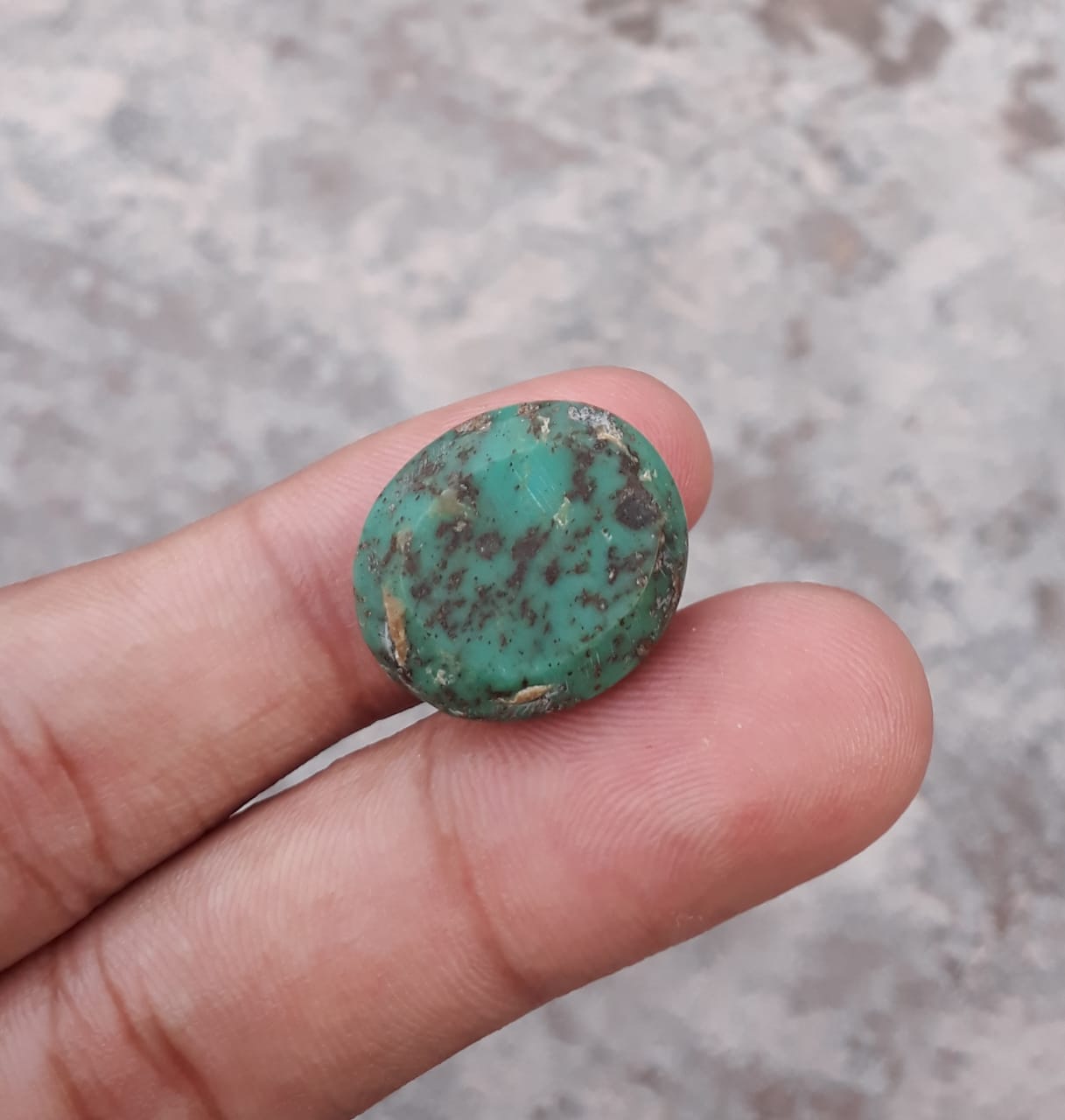 Этот драгоценный камень из натуральной бирюзы представляет собой изысканный овальный кабошон размером 21 х 18 мм с уникальной зеленой матричной бирюзой. Вырезанная из настоящей Фирозы, это настоящая Шаджри Фероза, которая, несомненно, будет ослепительна в любом изделии.