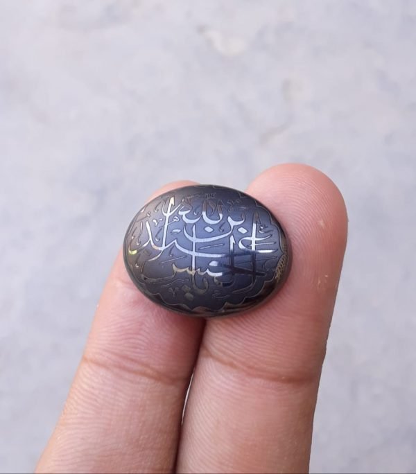 Этот красивый гематитовый кабошон размером 18x25 мм состоит из природного гематита, широко известного в исламской культуре как Хадид Чини. Этот драгоценный камень, на котором выгравированы традиционные исламские стихи, обладает восстанавливающими свойствами и пленительной красотой. Добавьте его в свою коллекцию, чтобы воспользоваться духовной и целительной силой гематита.