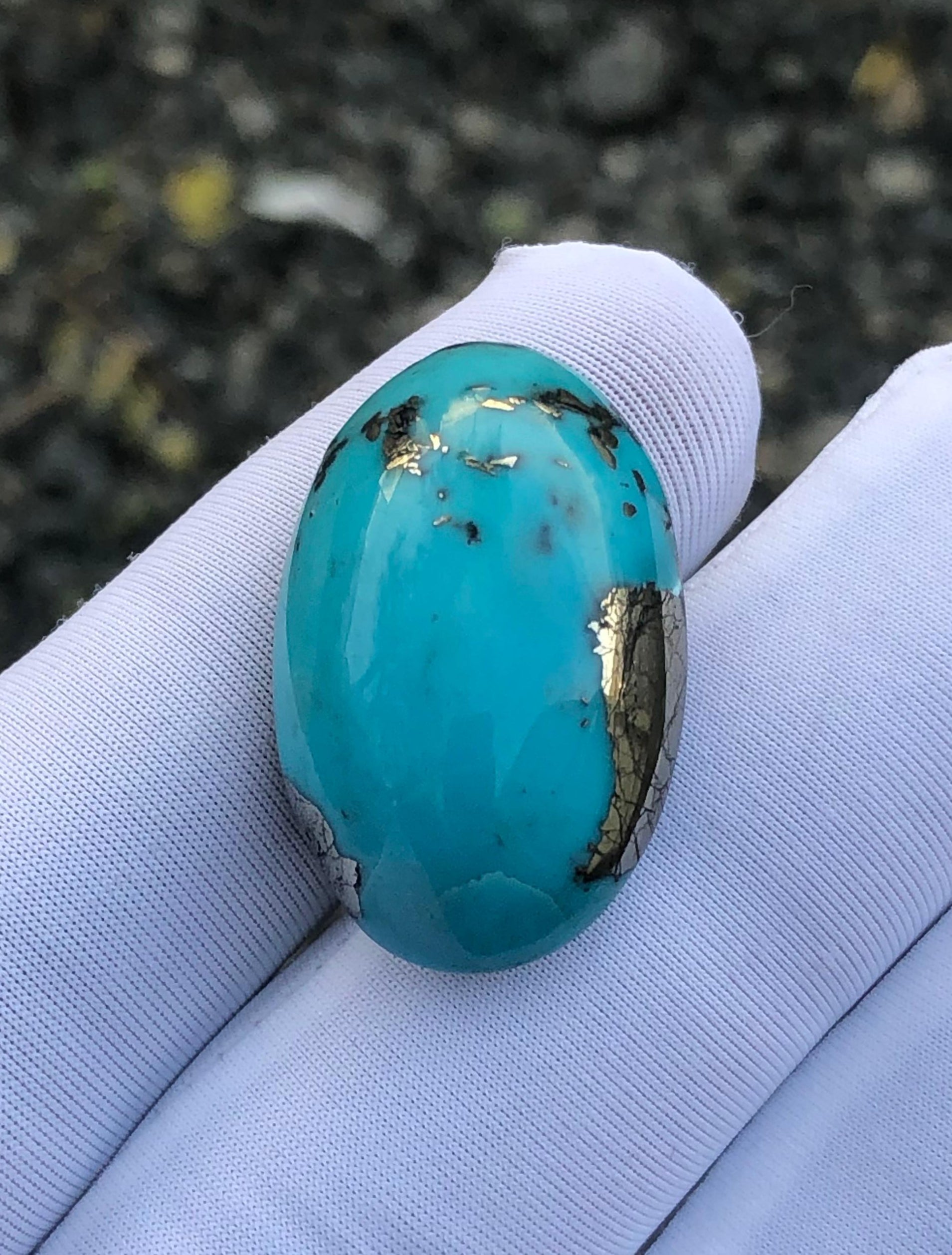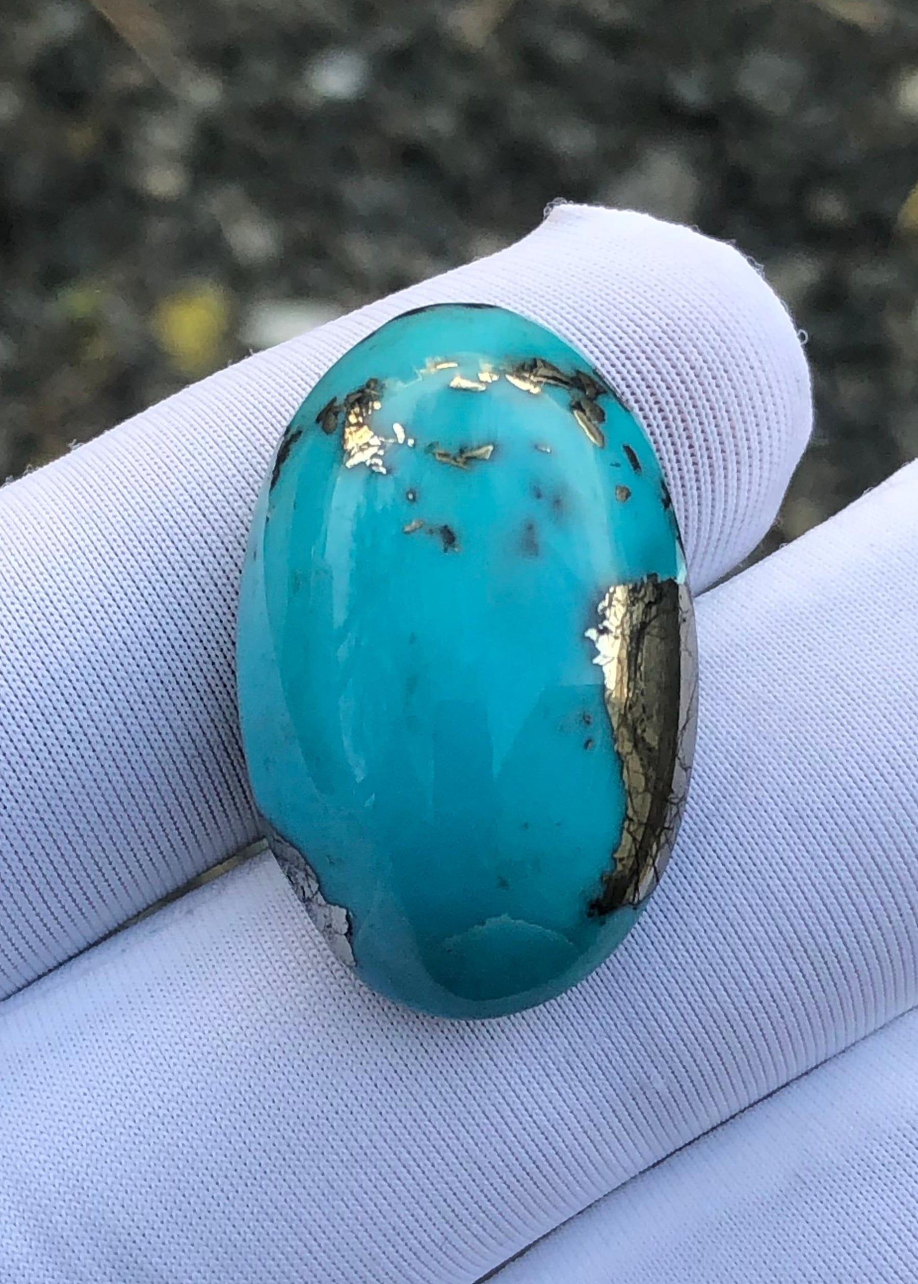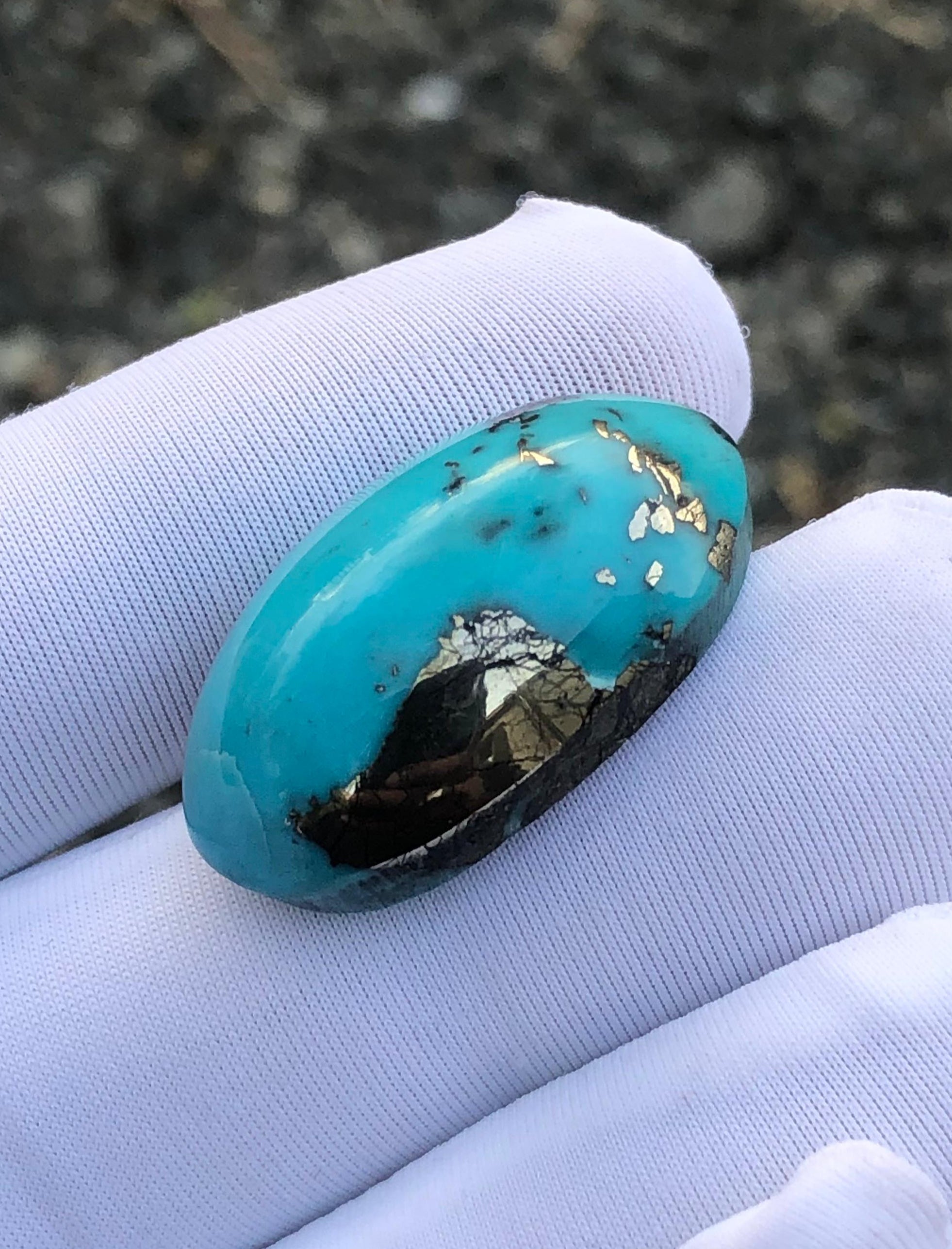 Бирюза 39 карат с пиритом, натуральный камень фероза, размер 28x18 мм