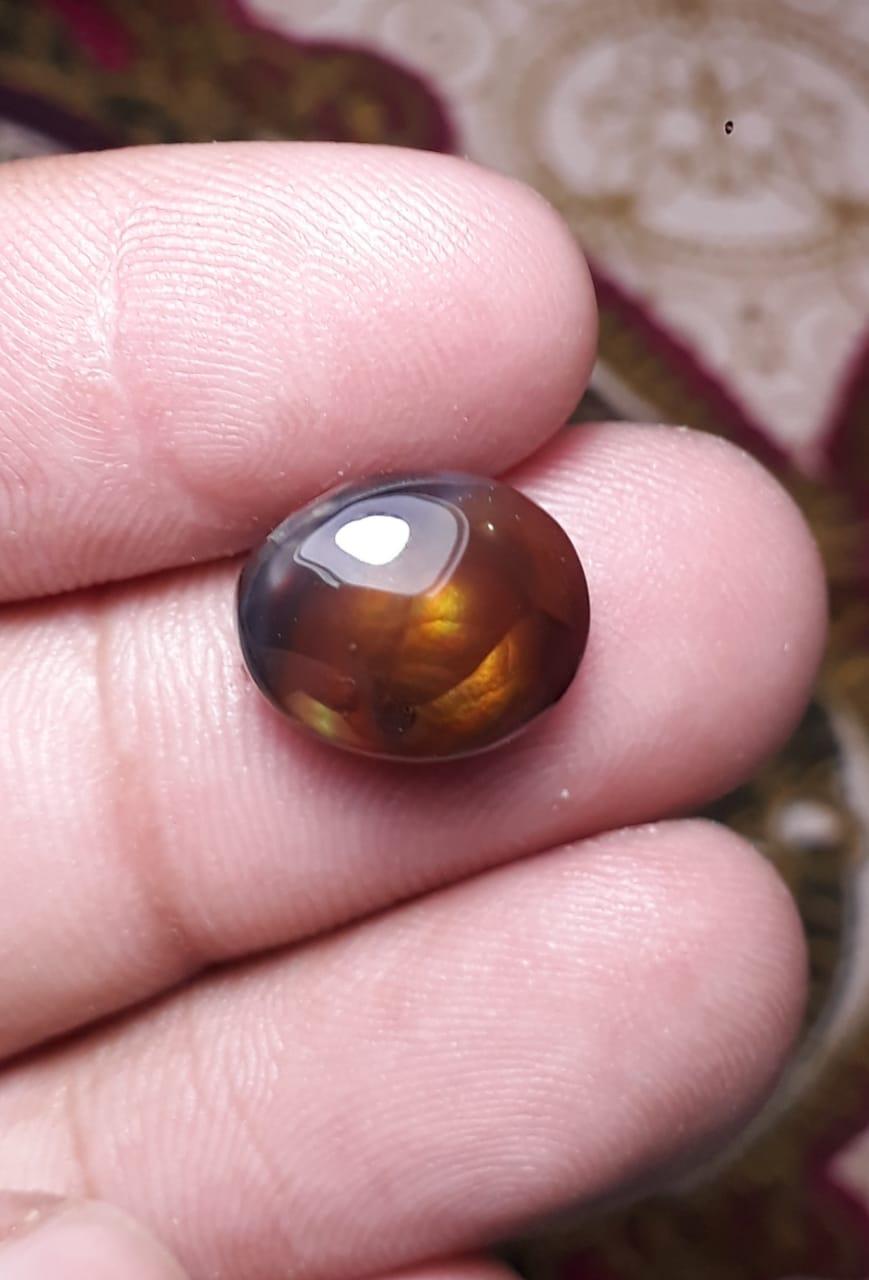 Этот редкий огненный агат весом 6,1 карата станет идеальным подарком для особого случая. Этот агат размером 13х10 мм с потрясающим желтым овальным кабошоном обязательно заметит себя.