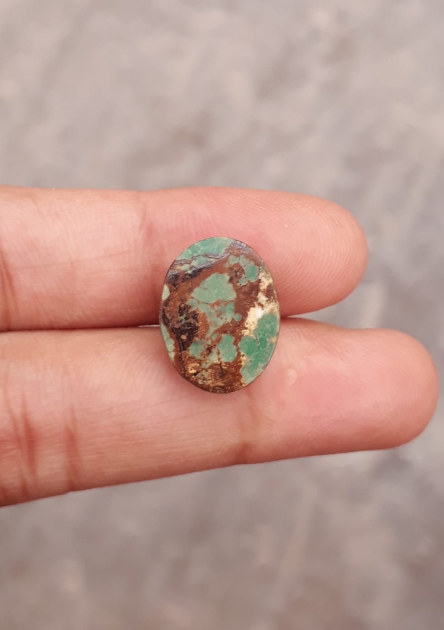 Эта натуральная зеленая матрица с драгоценным камнем пирит-бирюза добавит красивый штрих любому ювелирному изделию. Это настоящий камень Фирозы овальной формы и размерами 15,3х12 мм. Его различные особенности, такие как натуральный бирюзовый оттенок, пиритовая бирюза и иранская фероза, делают его уникальным и востребованным камнем.