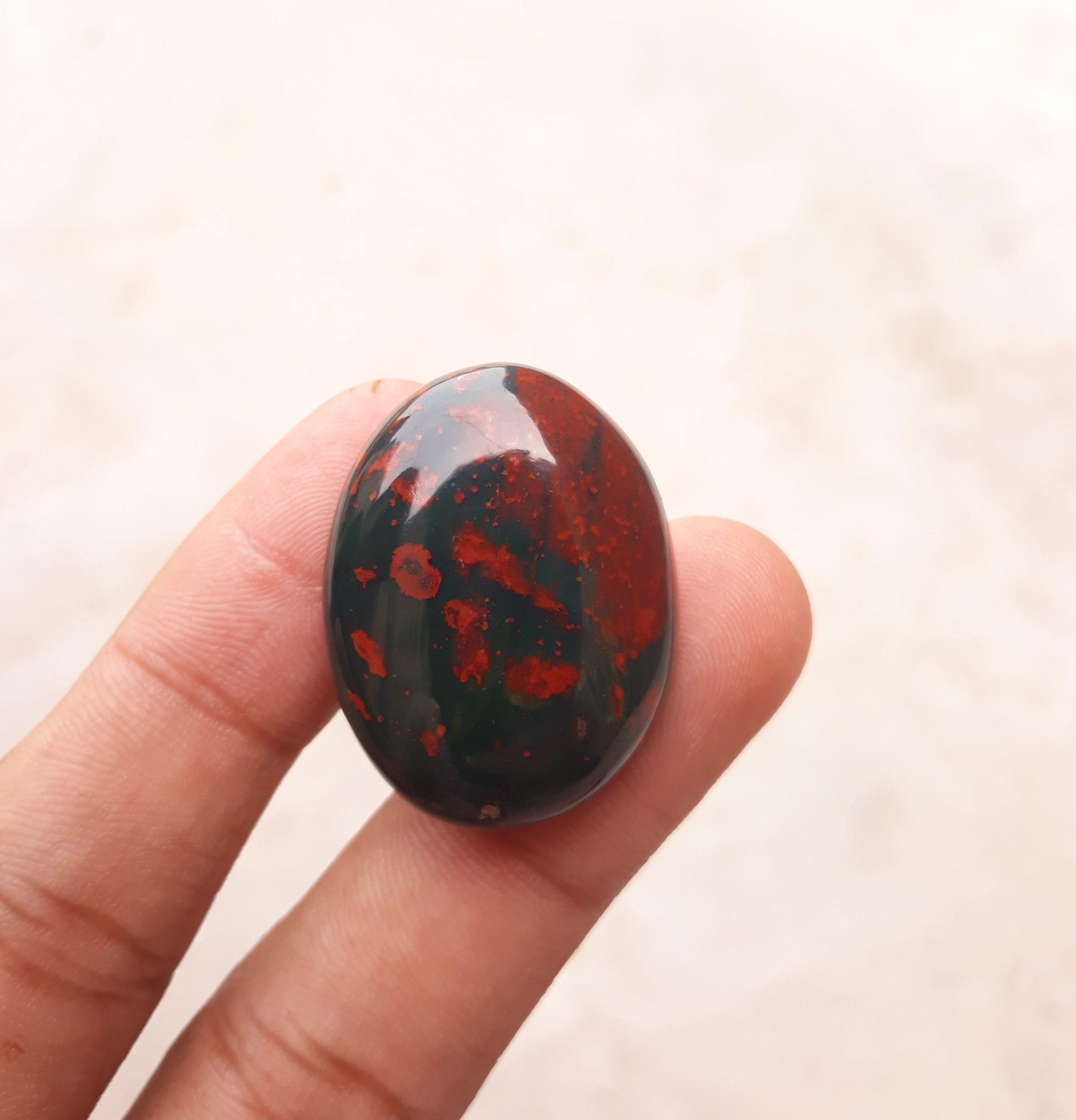 Этот натуральный высококачественный гелиотроп из кровавого камня — потрясающий и прочный драгоценный камень. Размером 33 x 26 мм и естественной прочностью он является идеальным выбором для ювелирных изделий и предметов коллекционирования. Этот королевский драгоценный камень станет отличным подарком на любой праздник.