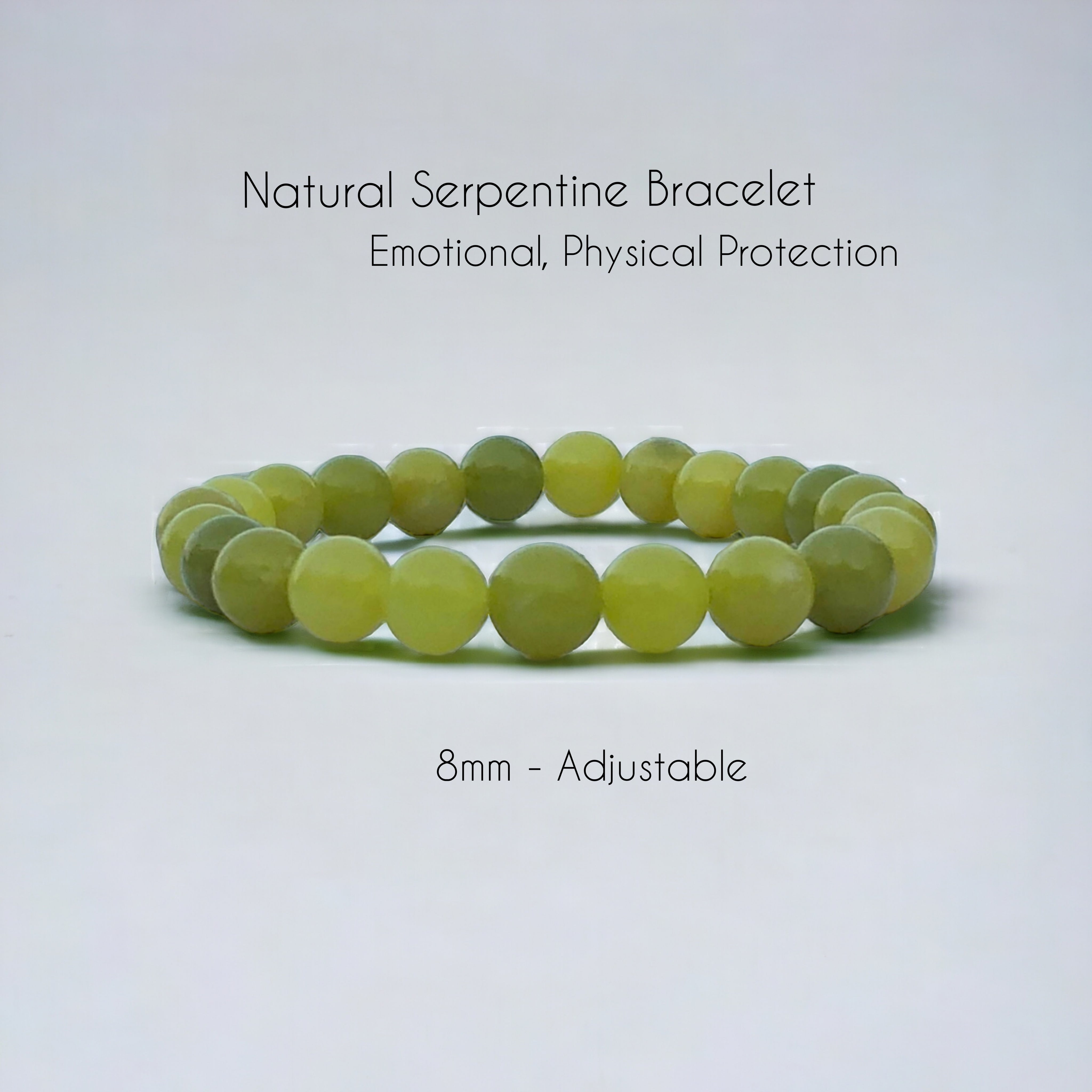 Этот спокойный и заземляющий браслет украшен бусинами из натурального змеевика диаметром 8 мм. Змеевик известен своими целебными свойствами, особенно благоприятными для эмоционального и физического благополучия. Однородные бусины диаметром 8 мм создают гладкий и гармоничный вид, что делает этот эластичный браслет идеальным аксессуаром для тех, кто ищет спокойствия и баланса в своей жизни, наслаждаясь утонченной красотой естественных оттенков змеевика.