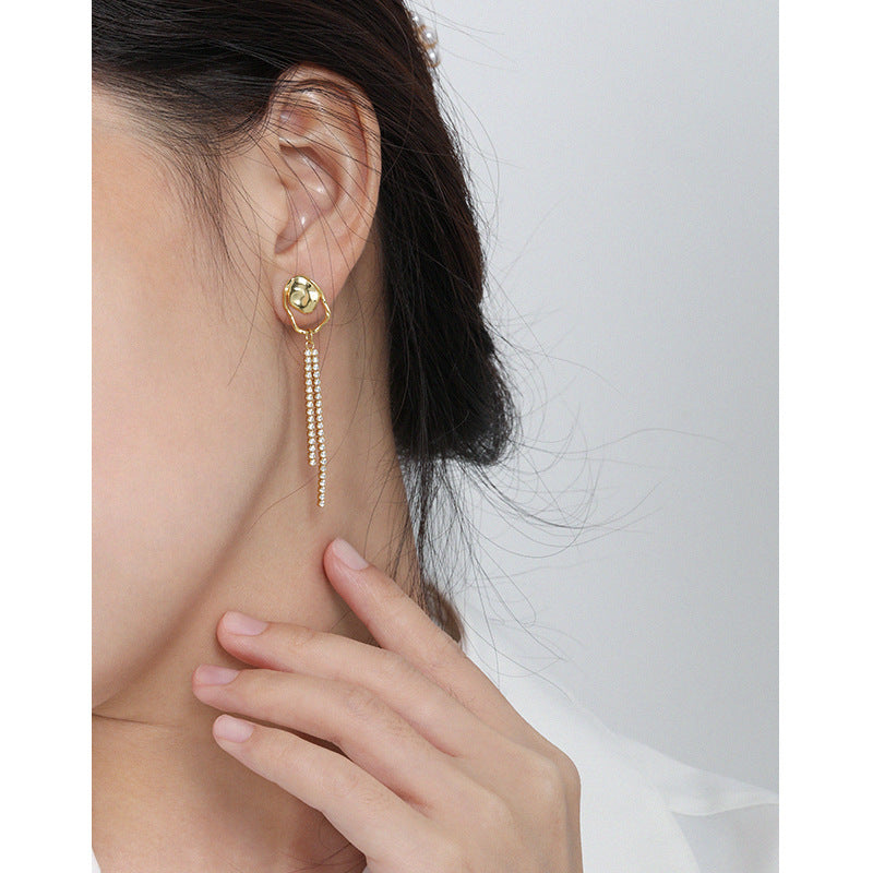 Висячие серьги с асимметричным жемчугом CZ и кисточками - позолоченные серебряные серьги с жемчугом для женщин - идеальные серьги с жемчугом в подарочной упаковке