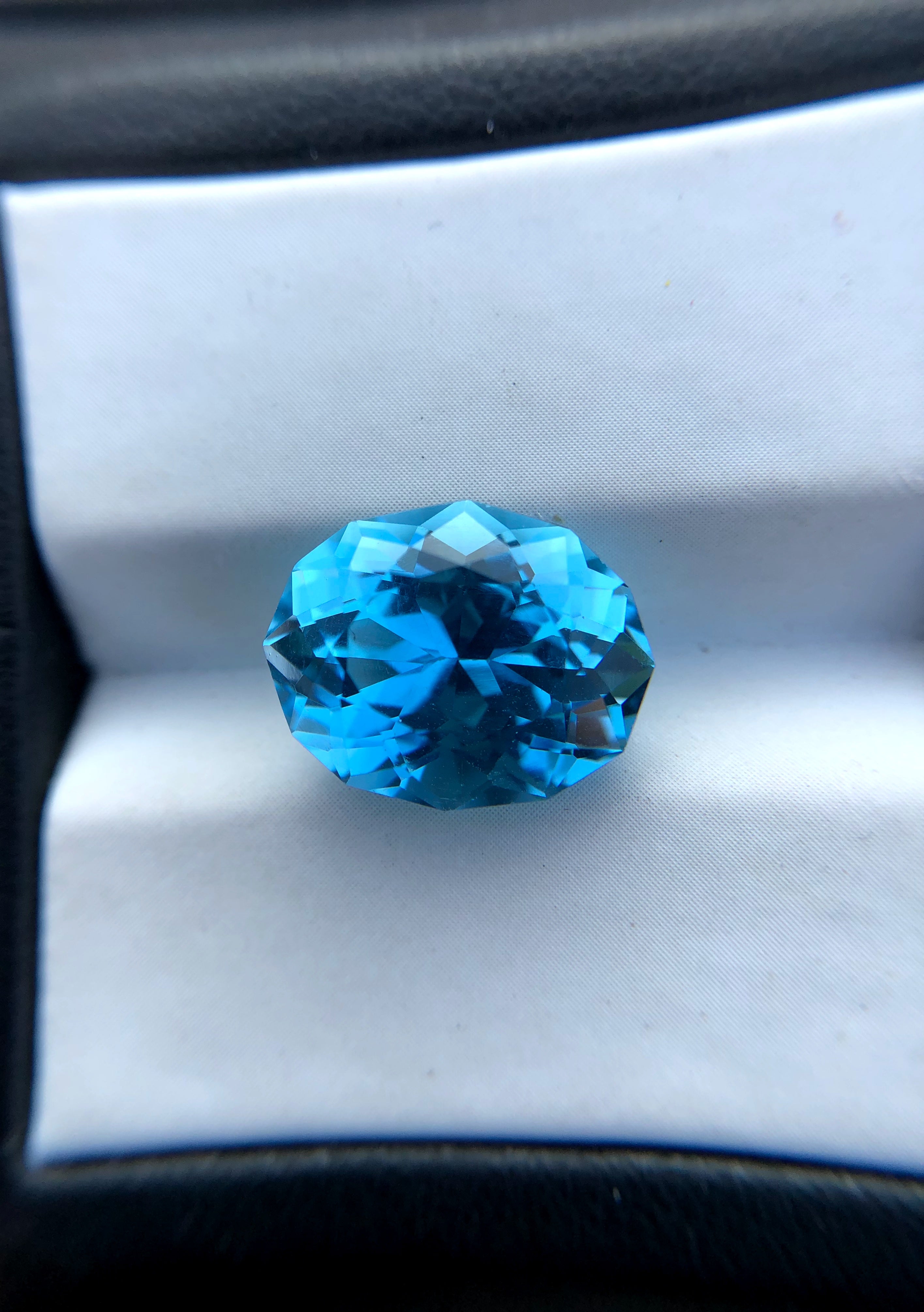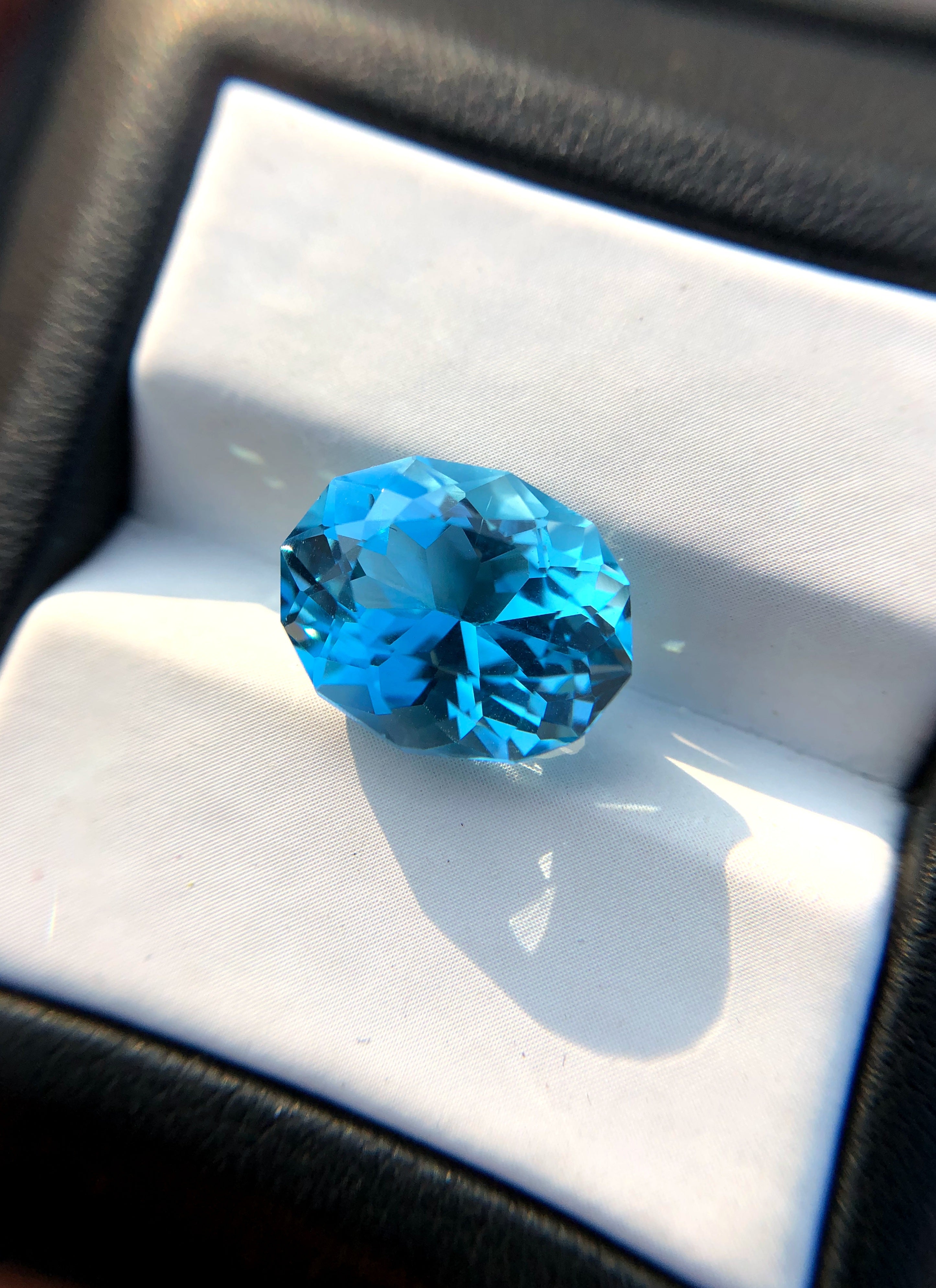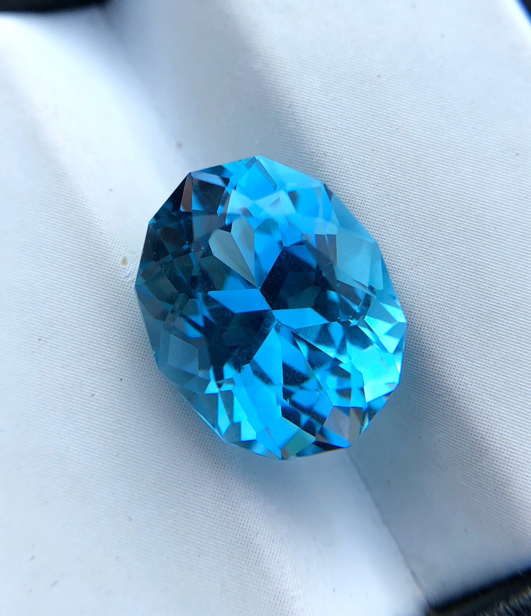 Этот сверкающий голубой топаз отличается потрясающей фантазийной огранкой, демонстрирующей его яркий цвет и исключительную чистоту. Идеально подходит для создания индивидуальных ювелирных украшений.