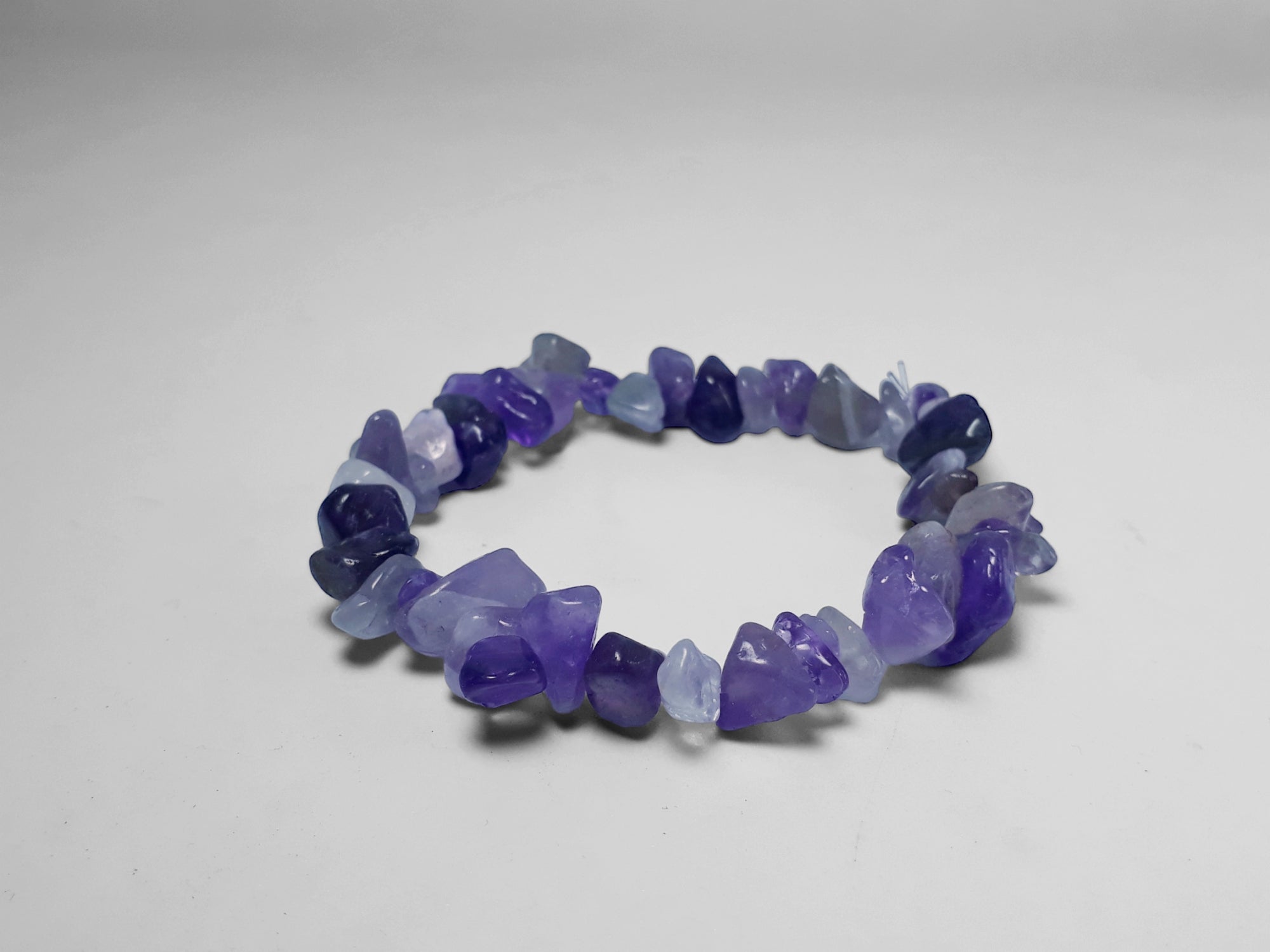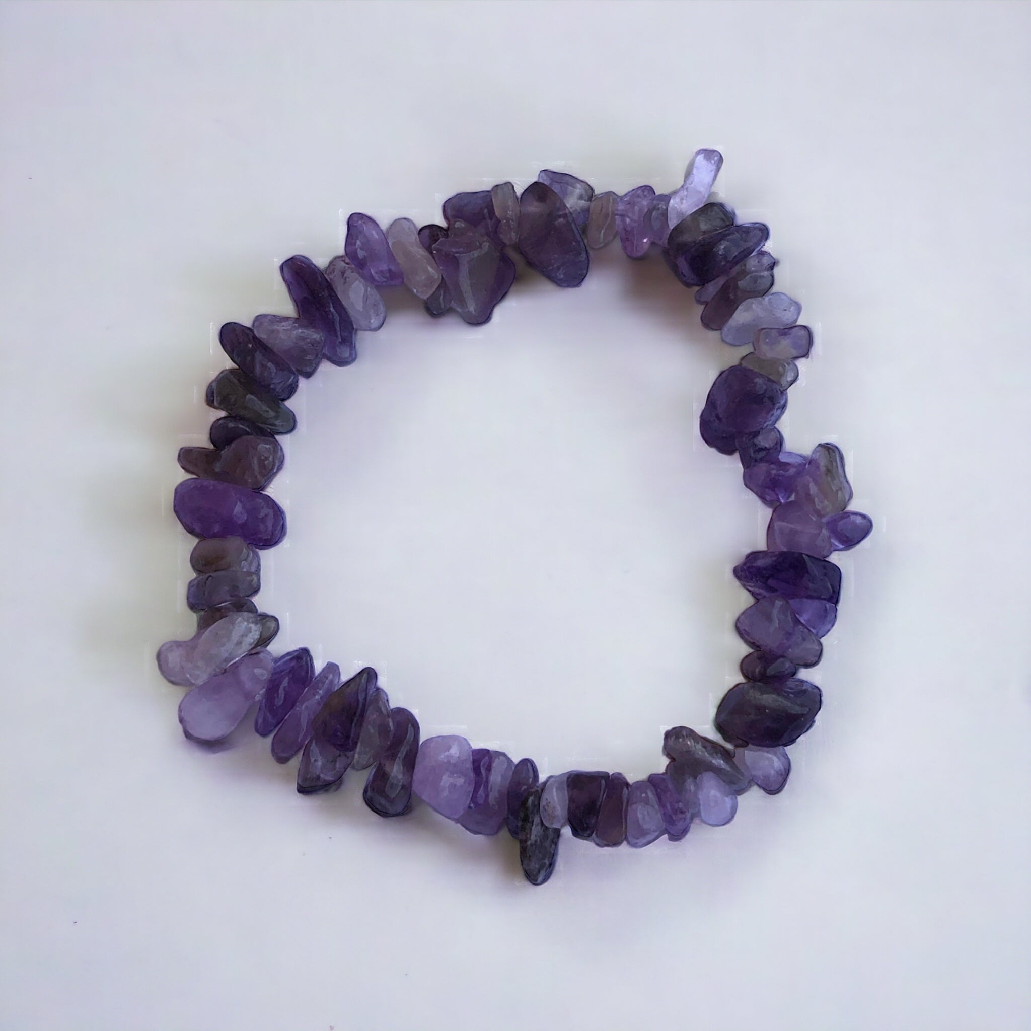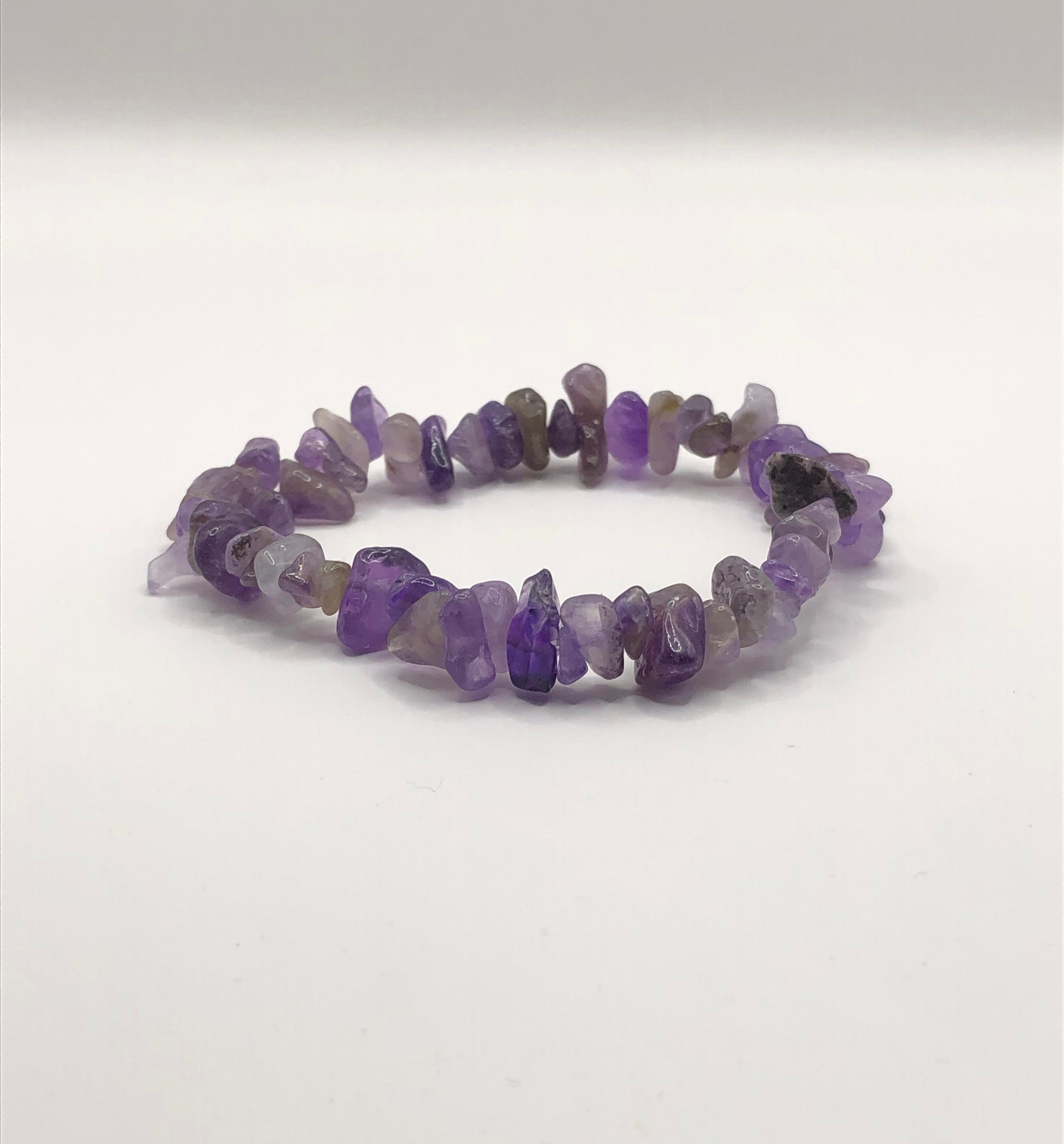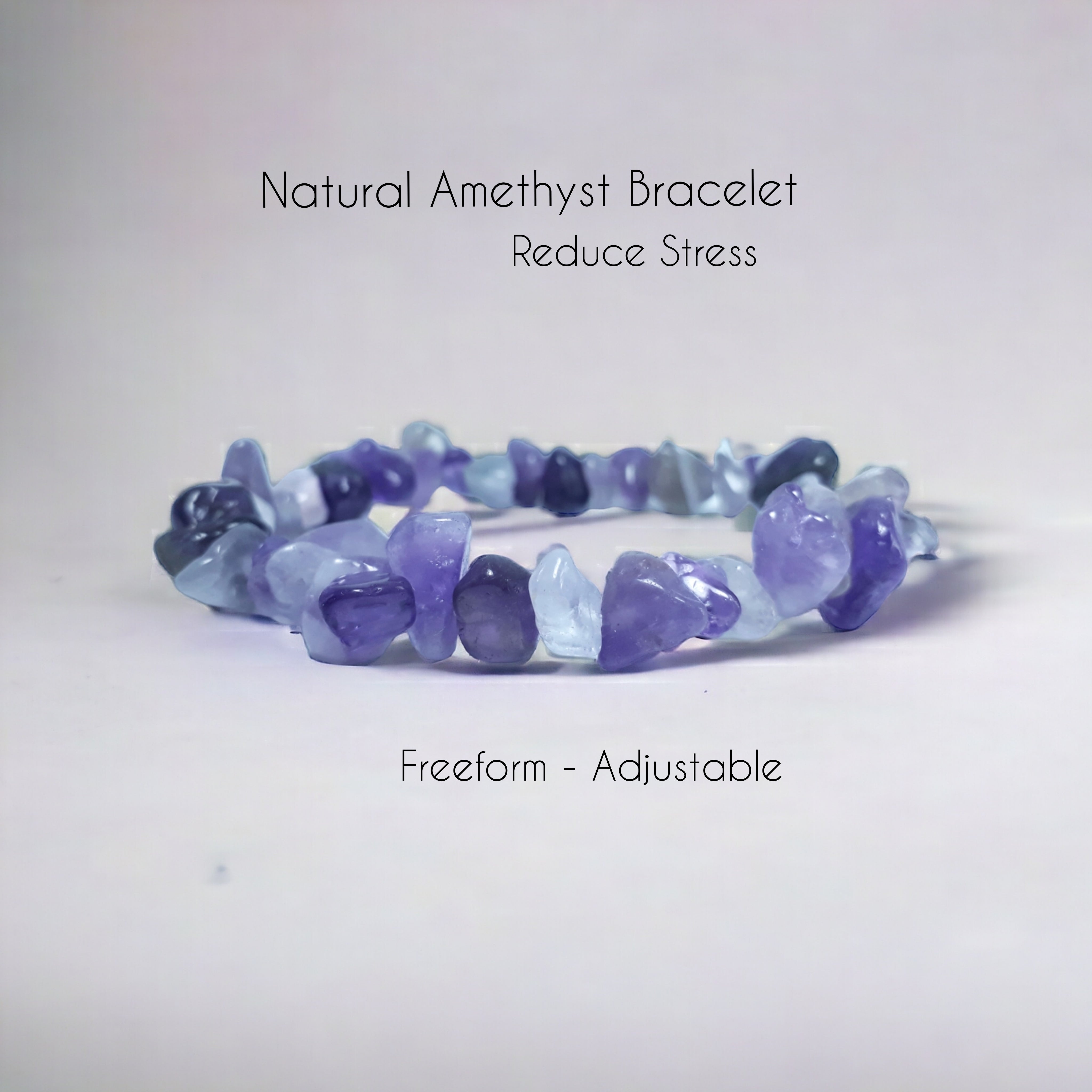 Этот изысканный браслет украшен натуральными камнями аметиста произвольной формы, каждый из которых имеет свою уникальную форму и красоту. Аметист — мощный и защитный камень, известный своими успокаивающими и целебными свойствами. Свободная форма камней придает нотку органической элегантности, что делает этот эластичный браслет идеальным аксессуаром для тех, кто ценит природную красоту и духовную пользу.
