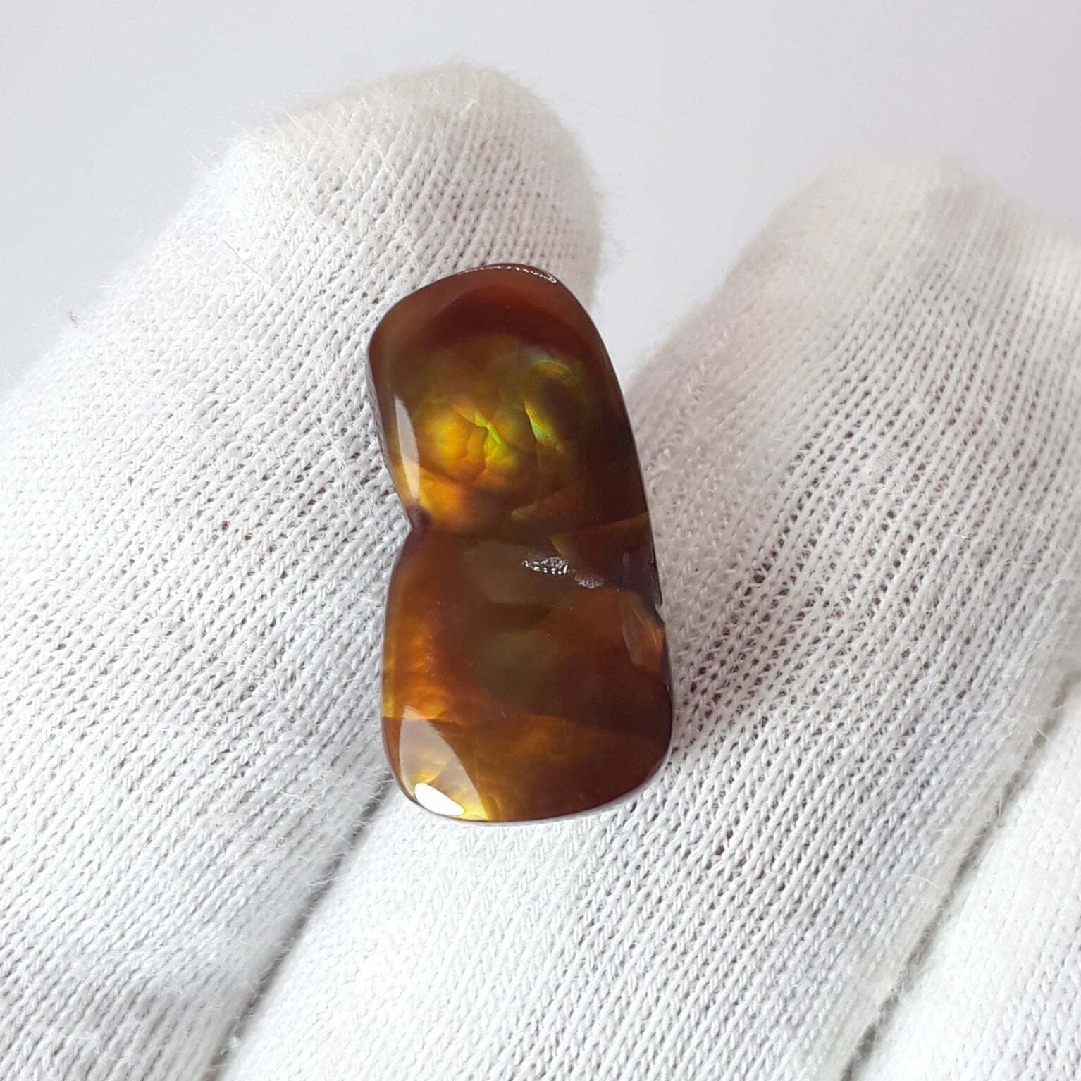 Этот мексиканский огненный агат представляет собой редкий желтый кабошон размером 17 х 9 мм, идеальный драгоценный камень для особого подарка или коллекции. Огненный агат встречается реже, чем бриллианты, и демонстрирует завораживающие переливающиеся цвета, создавая незабываемый эффект.