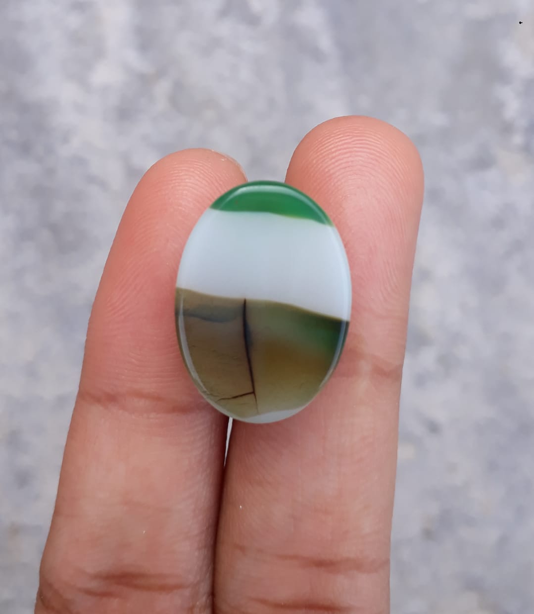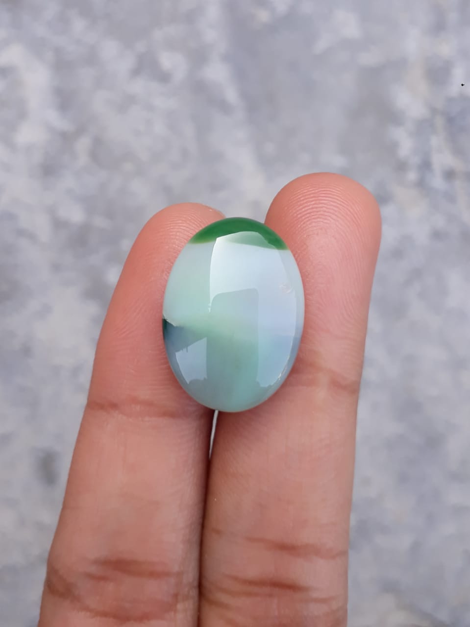 Этот королевский агат размером 15х20 мм с натуральным узором демонстрирует красоту зеленого халцедона и белого зеленого агата. Его замысловатые детали делают его вневременным дополнением к любой ювелирной коллекции.