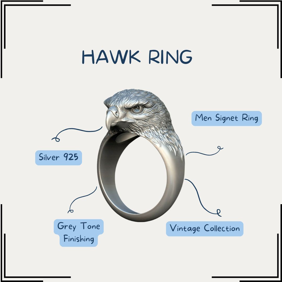 Раскройте свою внутреннюю силу с помощью кольца-печатки Hawk Vintage из стерлингового серебра 925 пробы . Это изысканное изделие сочетает в себе классическое мастерство и современный стиль, что делает его идеальным аксессуаром для тех, кто ценит вневременной стиль с яркой изюминкой.