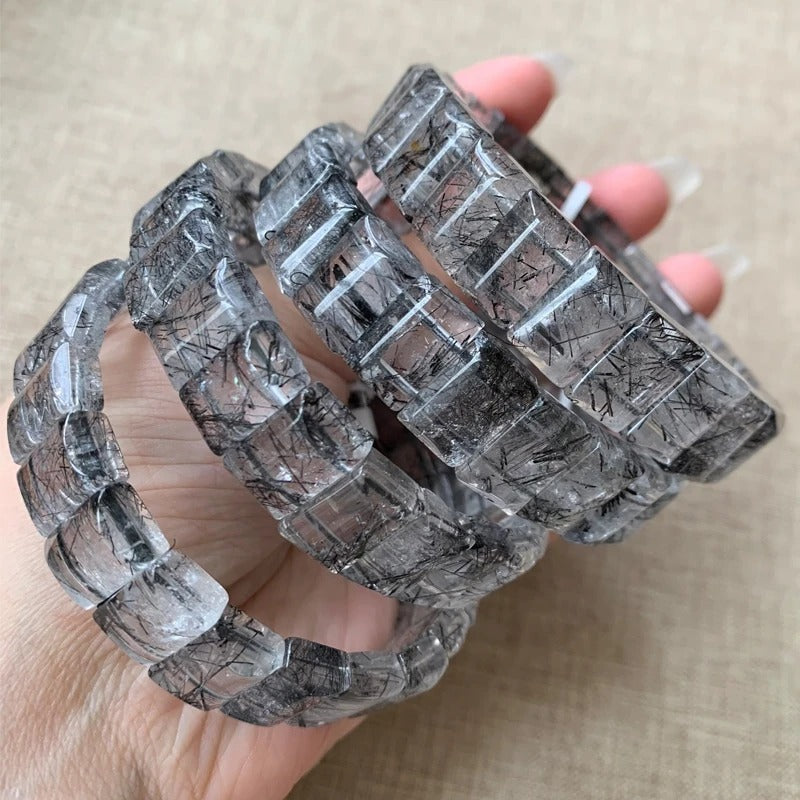 Этот браслет из натурального черного рутилированного кварца изготовлен из кусочков высококачественного кварца. Говорят, что этот браслет значительно повышает духовную силу владельца, одновременно способствуя эмоциональному и физическому балансу. Отличный материал для помощи в духовном росте.