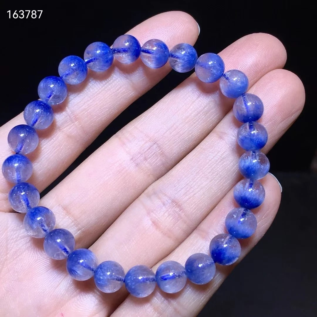Этот браслет из натурального синего рутилированного кварца Дюмортьерит станет идеальным аксессуаром для любого образа. Размер 7,3 мм, изготовленный из натуральных драгоценных камней, создает ощущение гладкости и легкости, что позволяет носить его в течение всего дня.