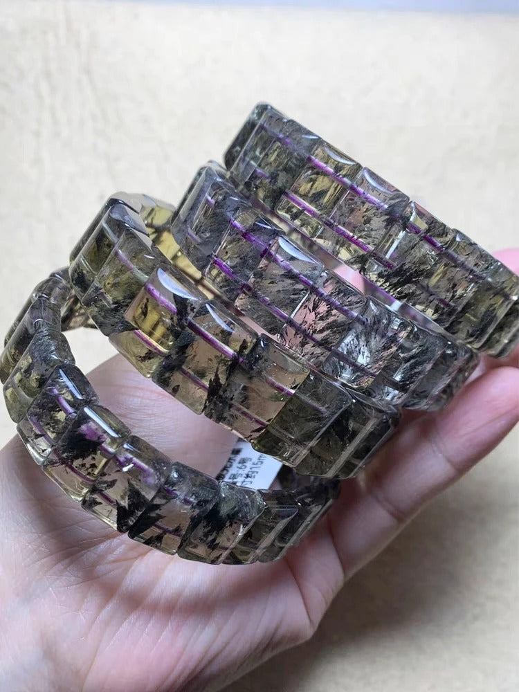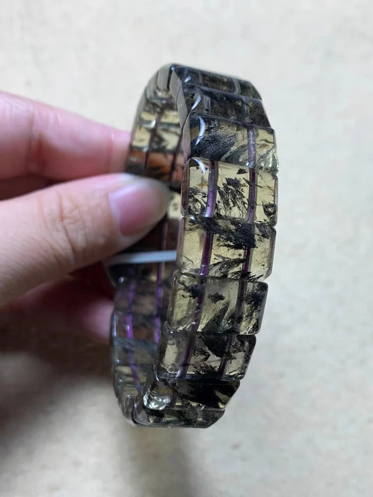 Этот браслет из натурального какоксенита, фиолетового золота, рутилового кварца и драгоценных камней изготовлен из бусин размером 16x12 мм и имеет множество преимуществ. Известно, что какоксенит способствует духовному росту и помогает укрепить интуицию и проницательность. Говорят, что он гармонизирует тело и устраняет любые энергетические блокировки. Наслаждайтесь красивым цветом и энергией этого браслета.