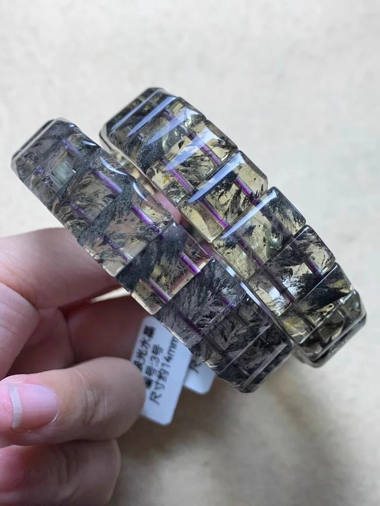 Этот изысканный браслет из натурального какоксенита с фиолетовым золотом и рутилированным кварцем станет идеальным аксессуаром для любого случая. Этот красивый браслет обязательно придаст вашему образу изюминку.