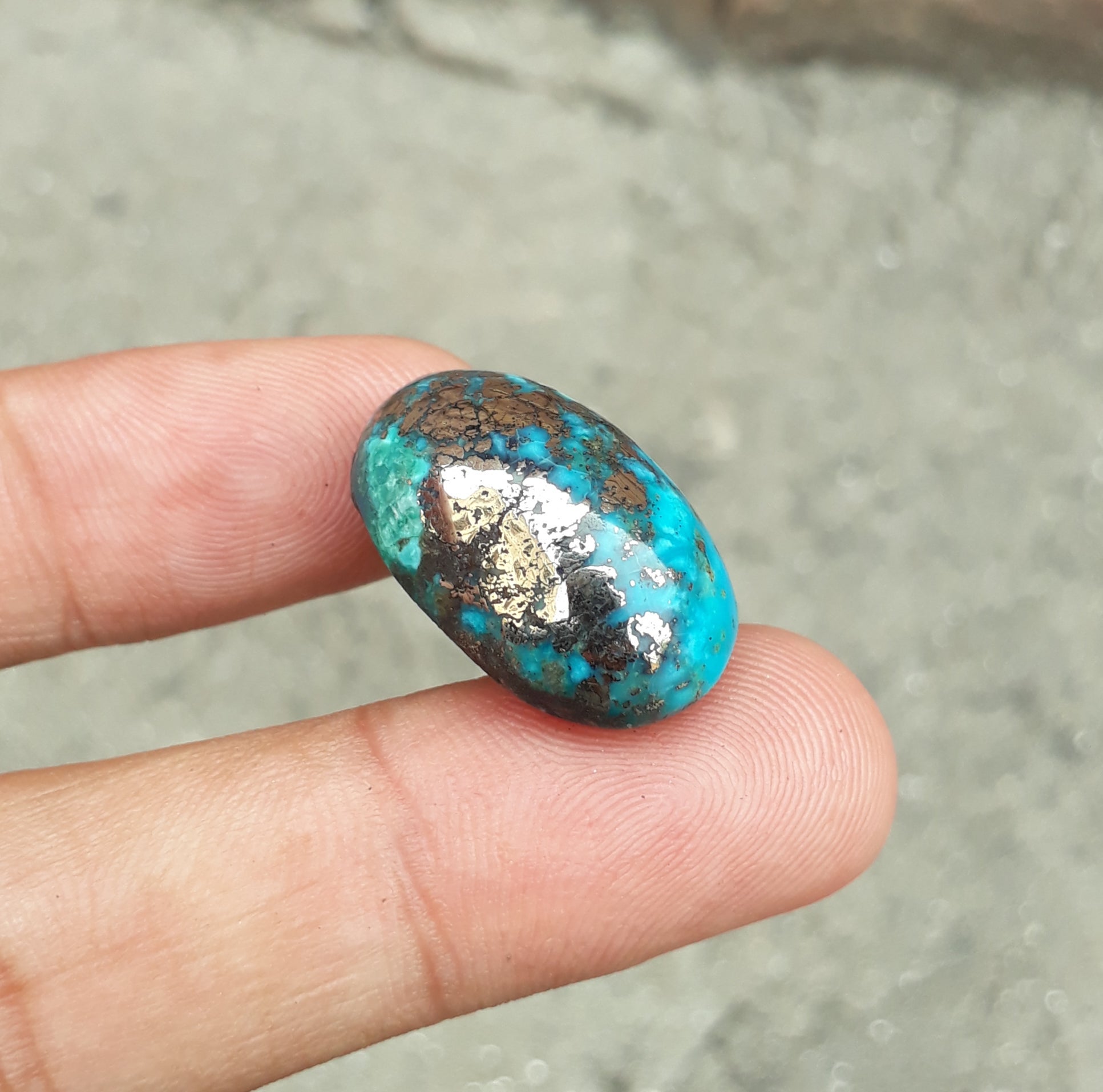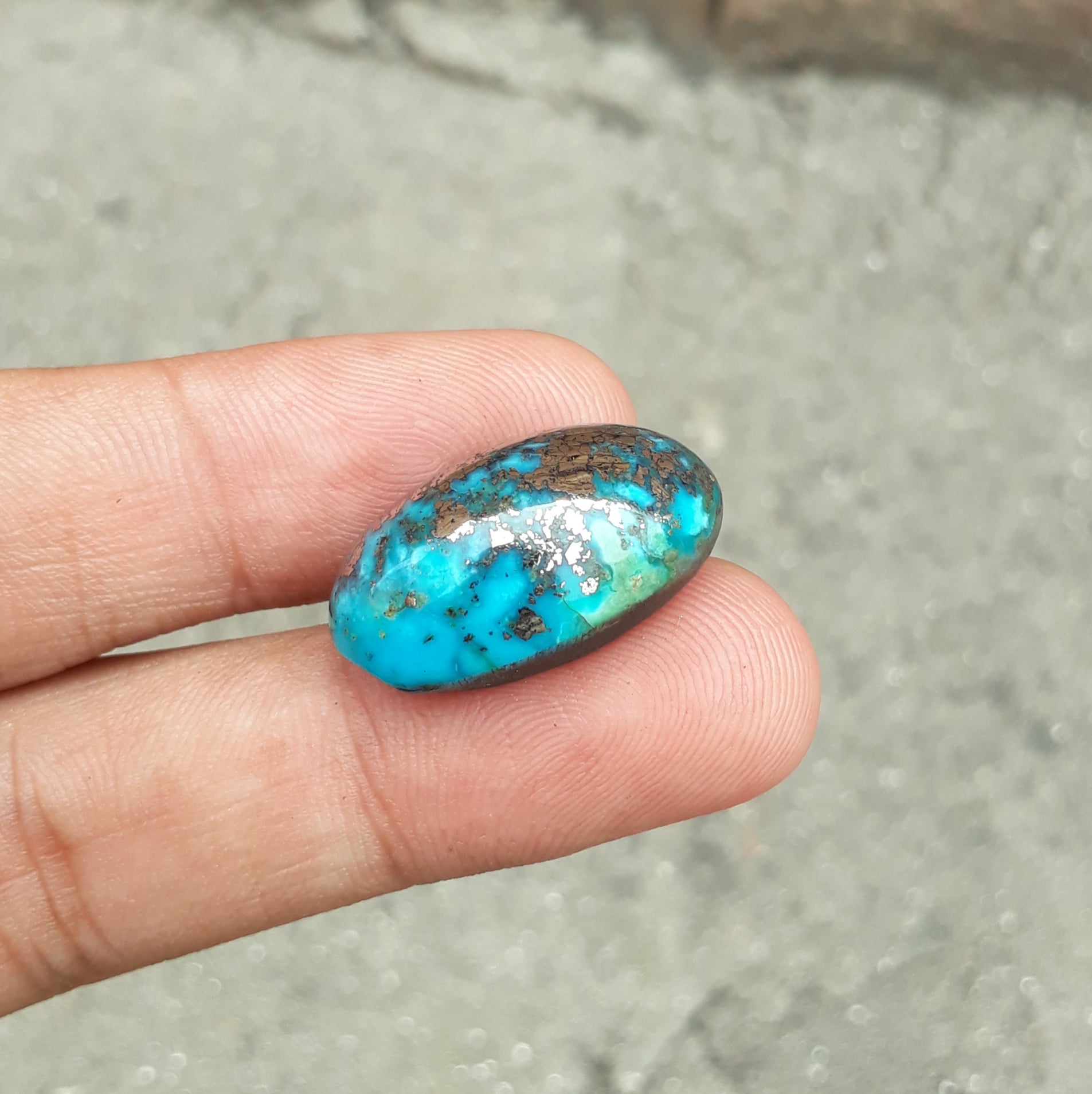 Этот классический кабошон из персидской бирюзы имеет потрясающий глубокий синий цвет и сложную матрицу из пирита. Этот камень весом 31,9 карата, профессионально ограненный по форме, станет идеальным выбором для создания красивых украшений или использования в качестве предмета коллекционирования. Благодаря своему привлекательному дизайну он обязательно добавит красоты любому изделию.