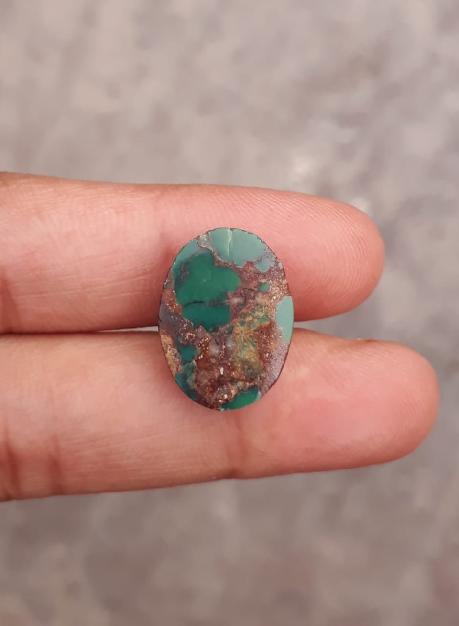 Размер этого настоящего драгоценного камня бирюзы составляет 17x13 мм, он имеет красивую зеленую матрицу. Он идеально подходит для изготовления украшений или как самостоятельное изделие. Натуральный камень – Шаджри Фероза, также известный как Настоящая Фироза.