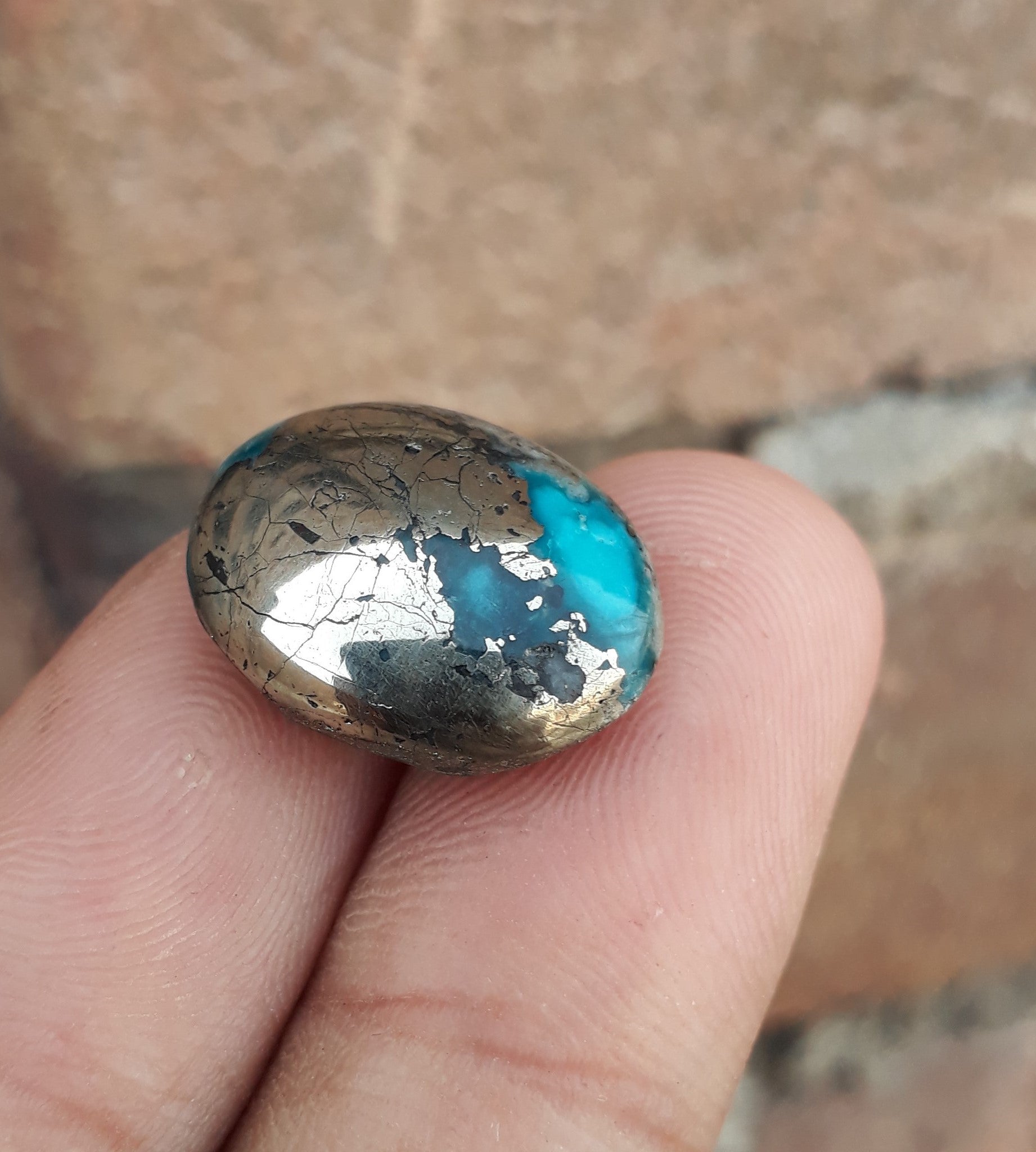 Этот классический кабошон из персидской бирюзы имеет потрясающий глубокий синий цвет и сложную матрицу из пирита. Этот камень весом 15,45 карата, профессионально ограненный по форме, станет идеальным выбором для создания красивых украшений или использования в качестве предмета коллекционирования. Благодаря привлекательному дизайну он обязательно добавит красоты любому предмету.