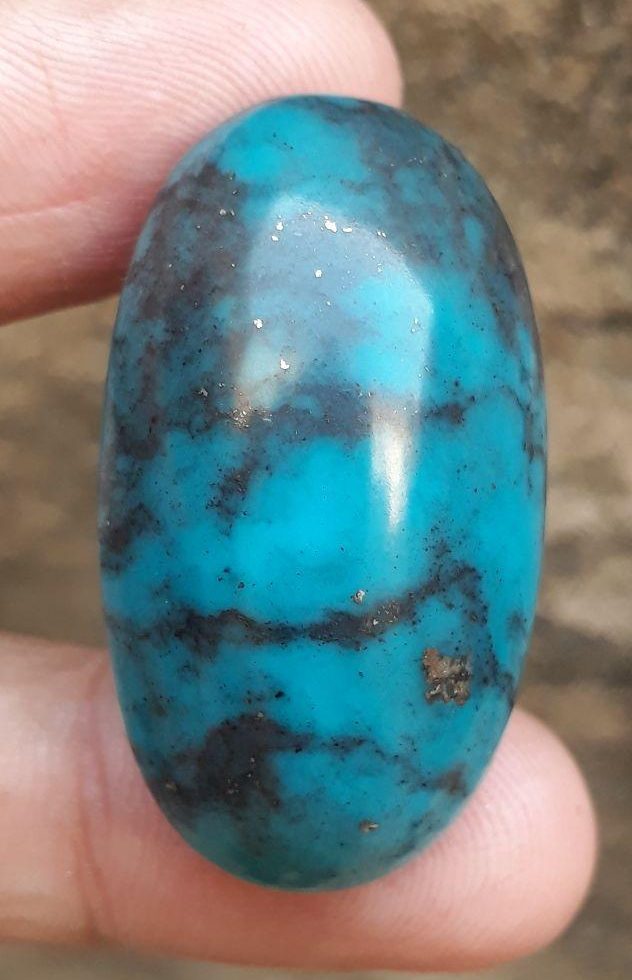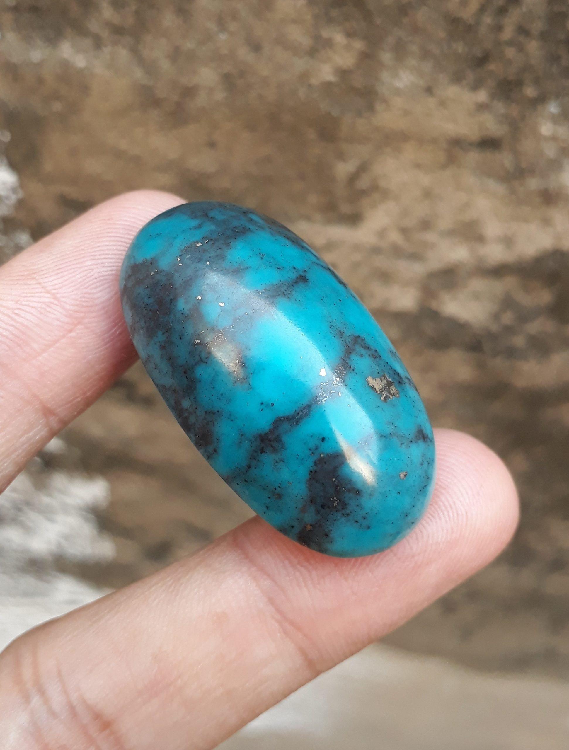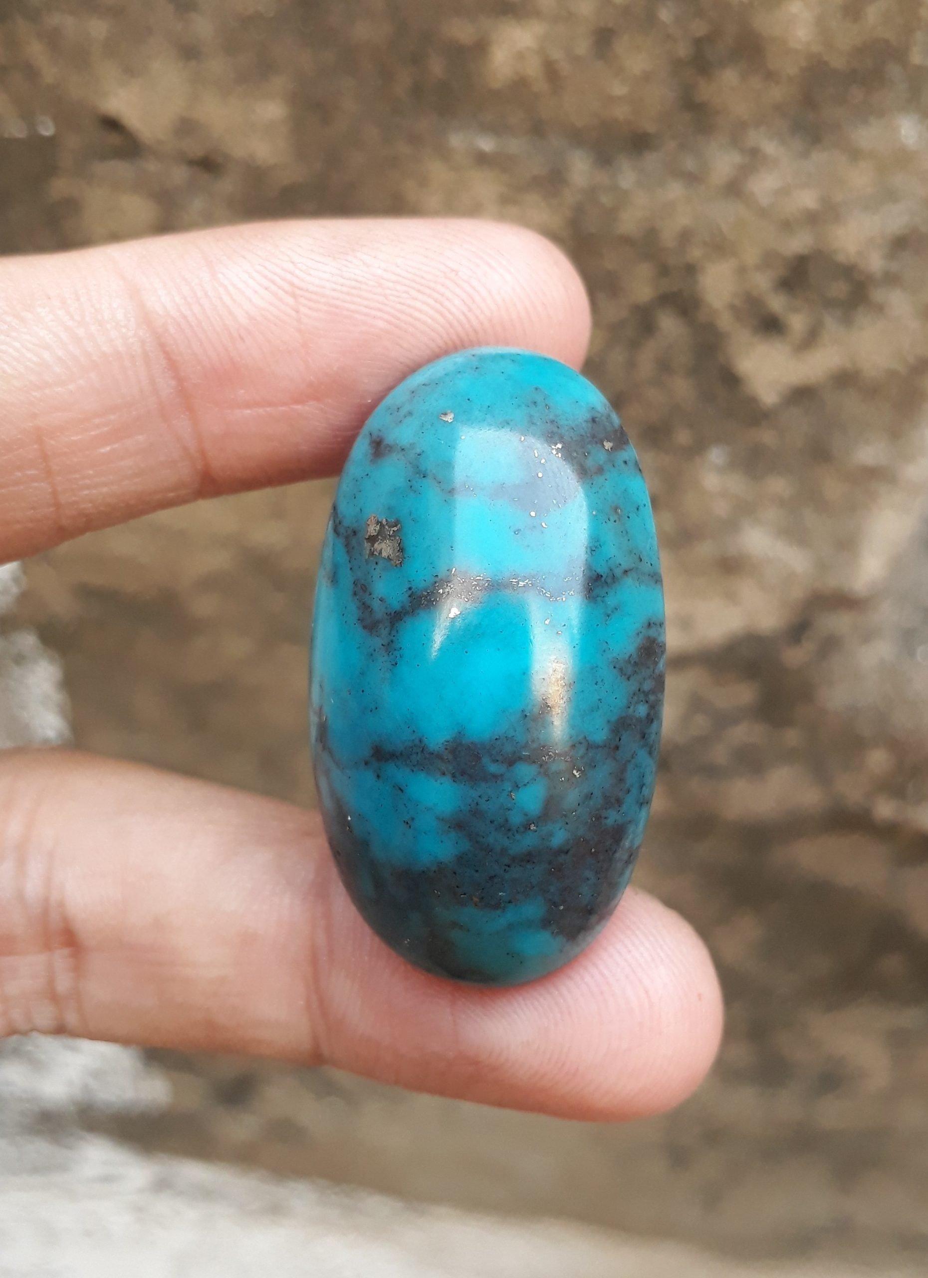 Этот кабошон из натуральной бирюзы с пиритом весом 82 карата имеет красивую синюю матрицу овальной формы 39x22 мм . Очень блестящая, искусно ограненная и отполированная, эта персидская бирюза станет ярким дополнением к любой коллекции.