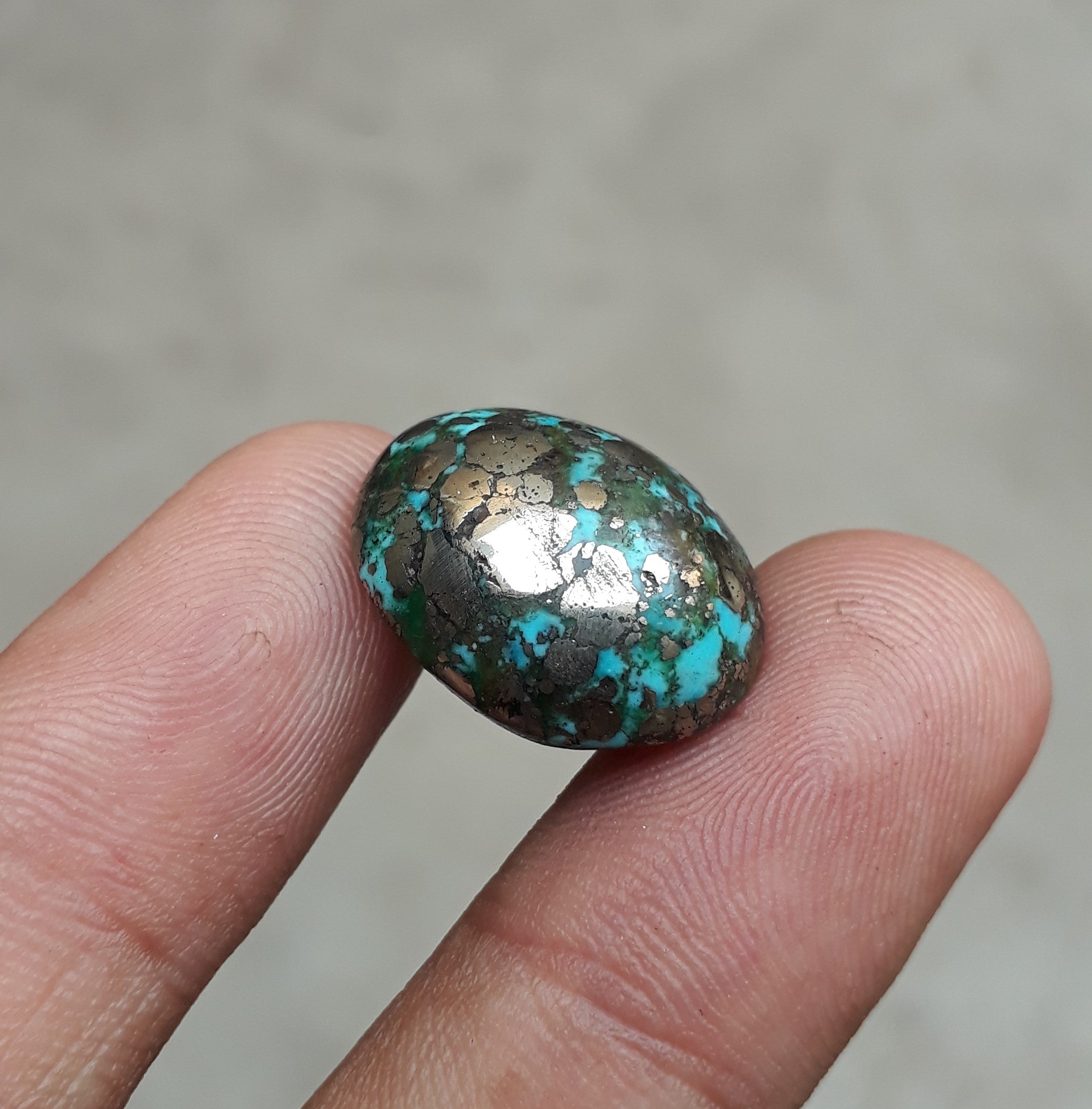 Этот классический кабошон из персидской бирюзы имеет потрясающий глубокий синий цвет и сложную матрицу из пирита. Этот 20-каратный камень, профессионально ограненный по форме, станет идеальным выбором для создания красивых украшений или использования в качестве предмета коллекционирования. Благодаря привлекательному дизайну он обязательно добавит красоты любому предмету.