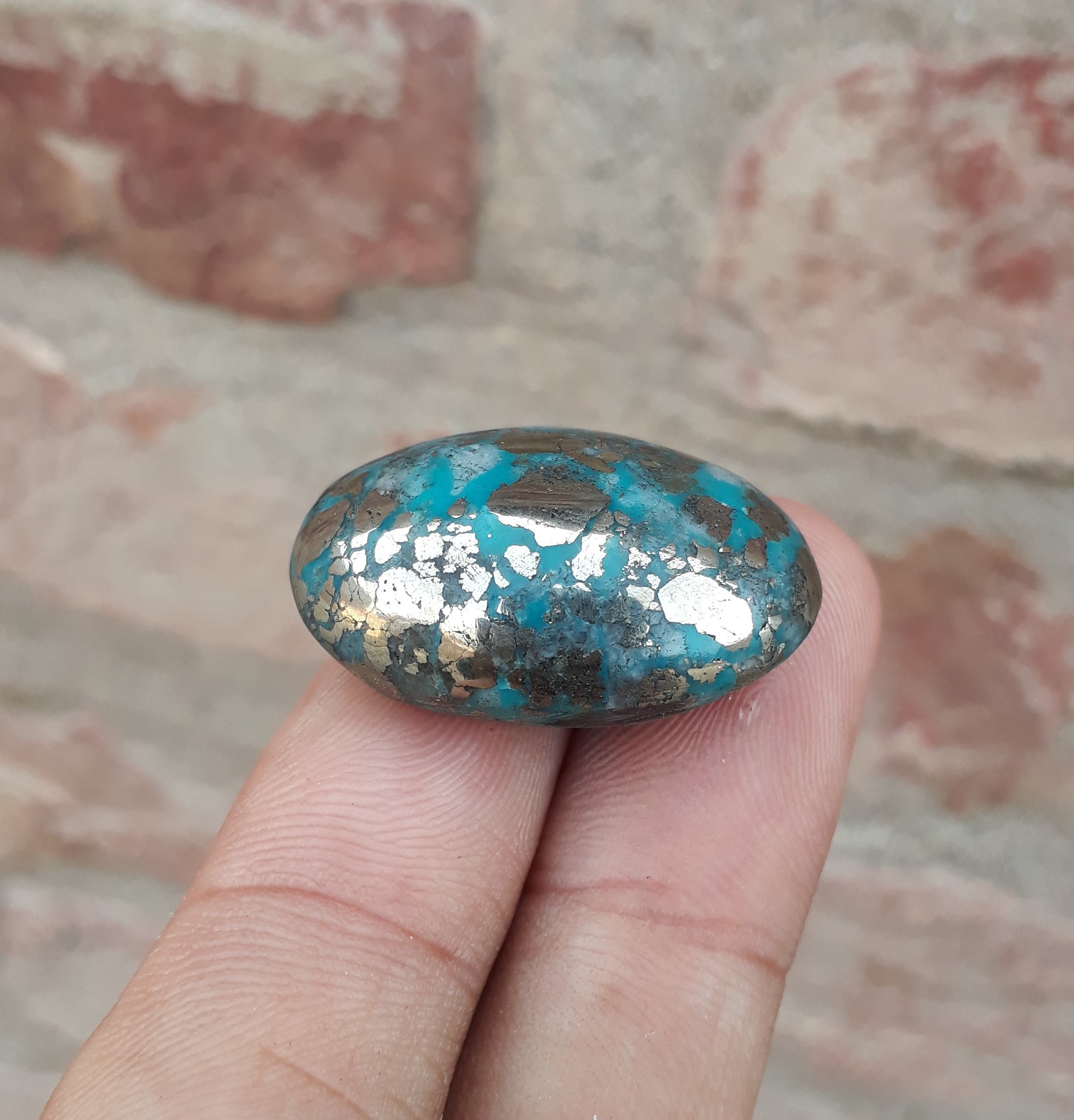 Этот классический кабошон персидской бирюзы отличается потрясающим насыщенным синим цветом и сложной матрицей пирита. Профессионально огранённый, этот 54-каратный камень идеально подходит для создания прекрасных ювелирных изделий или коллекционирования. Благодаря своему эффектному дизайну он, несомненно, украсит любое украшение.