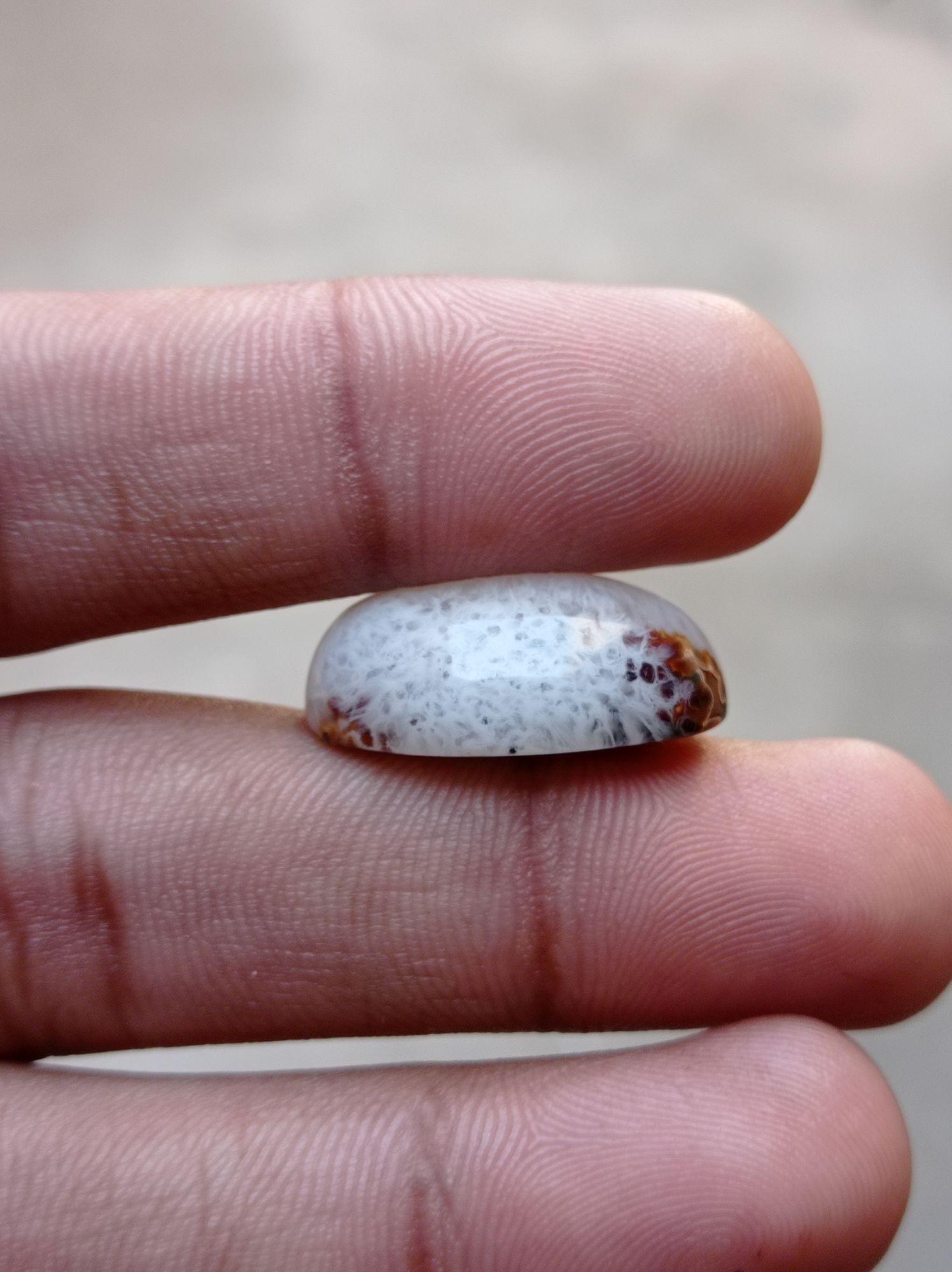 Кабошон из белого энгидритного агата - Sulaimani Aqeeq - 25x19x9 мм